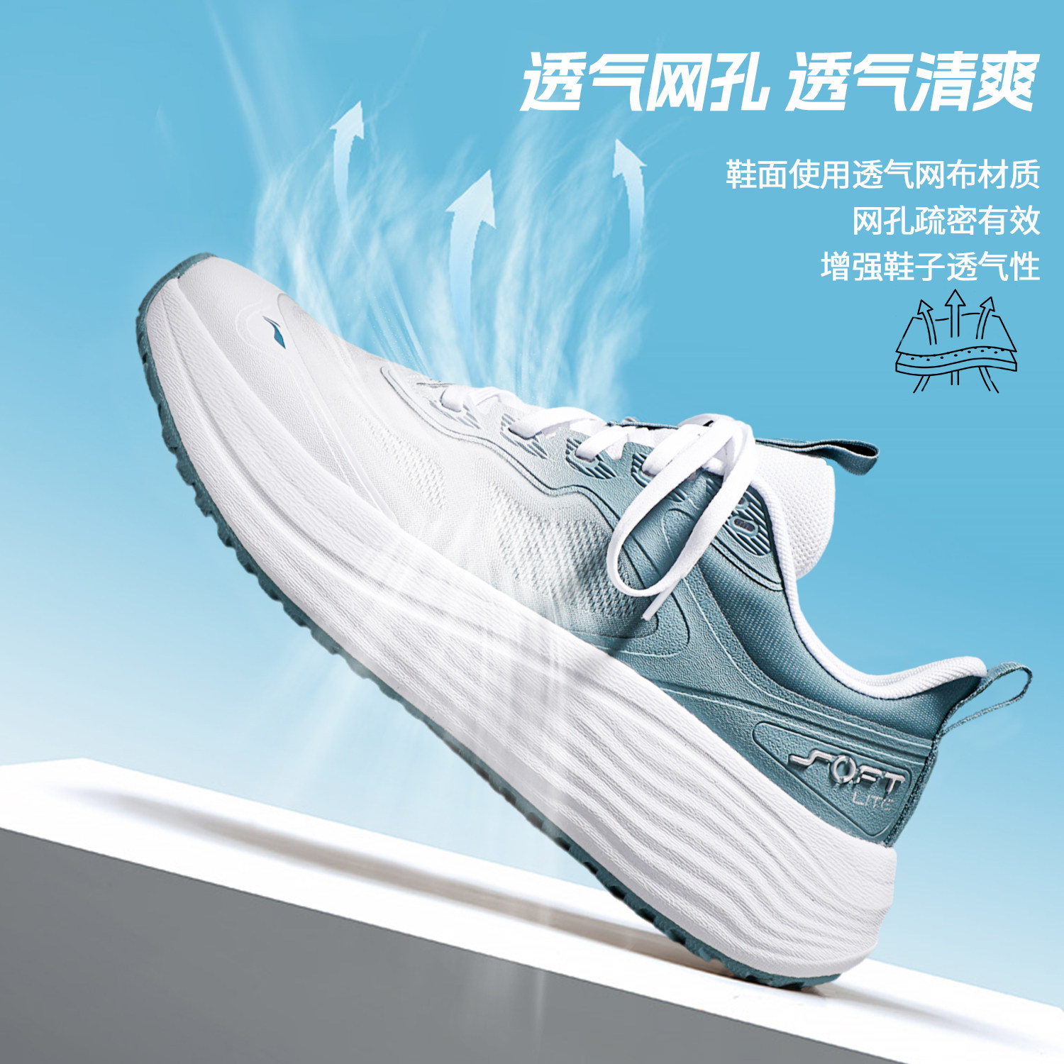 李宁SOFT LITE跑步鞋男款2024夏季新款透气网面透气运动休闲跑鞋