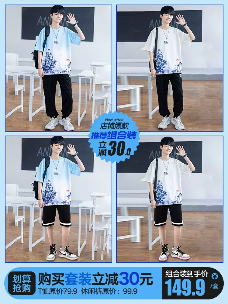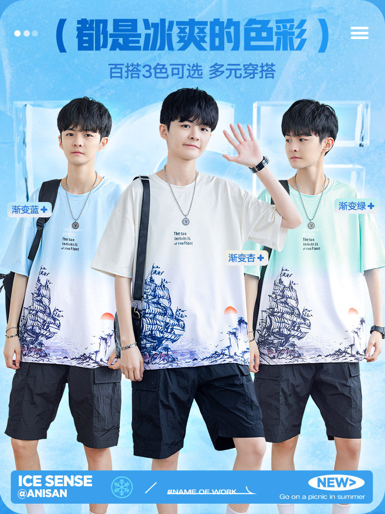 青少年冰丝速干短袖t恤男夏季2026新款初中高中学生帅气运动套装