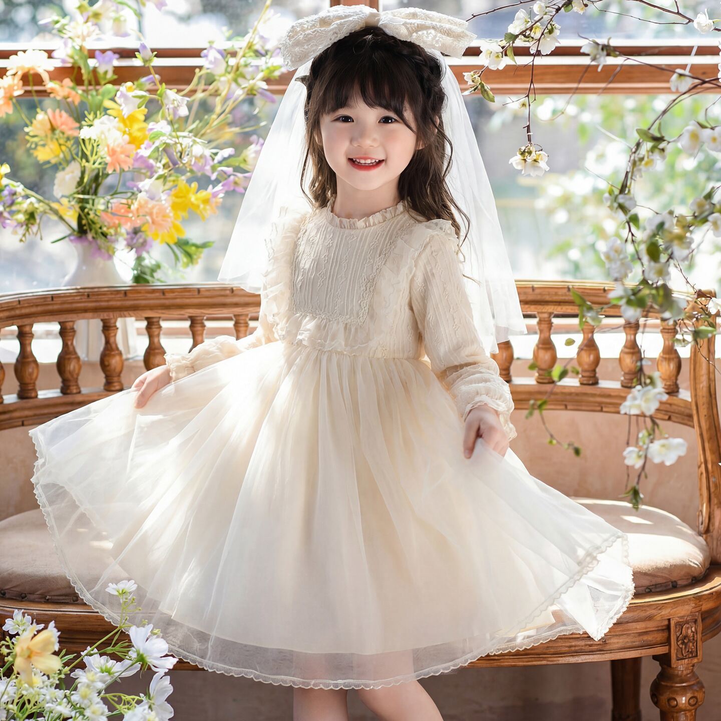 女童连衣裙春装2026新款儿童洋气生日公主裙女孩裙子春季礼服纱裙