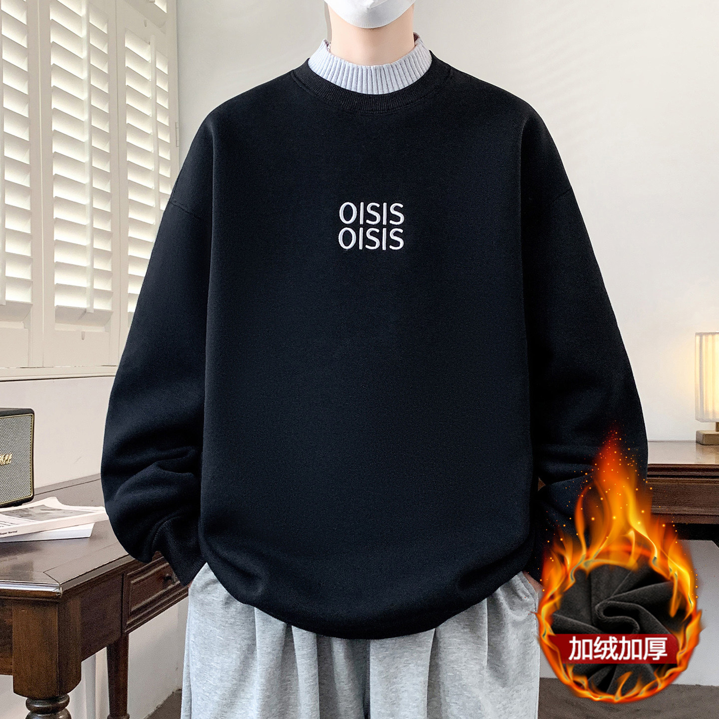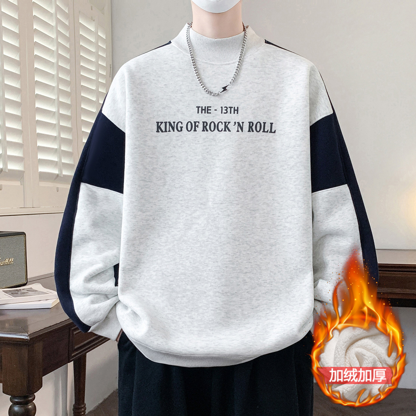 秋冬季新款半高领卫衣男生青少年学生加绒加厚打底衫长袖t恤男装