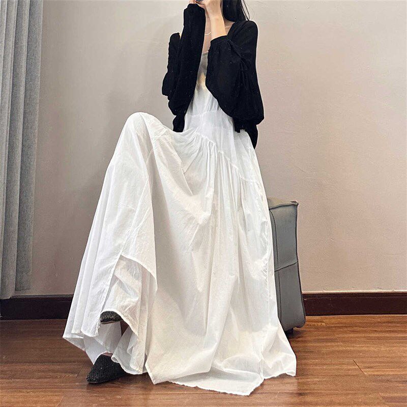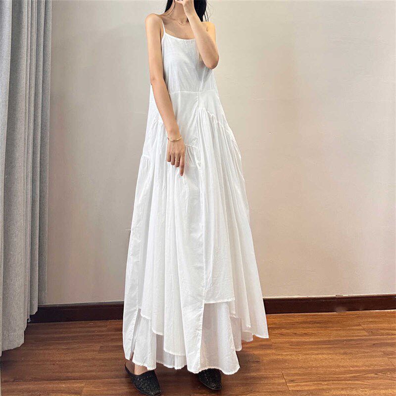 读衣术白色吊带裙夏女长款棉麻文艺长裙到脚踝宽松显瘦内搭连衣裙