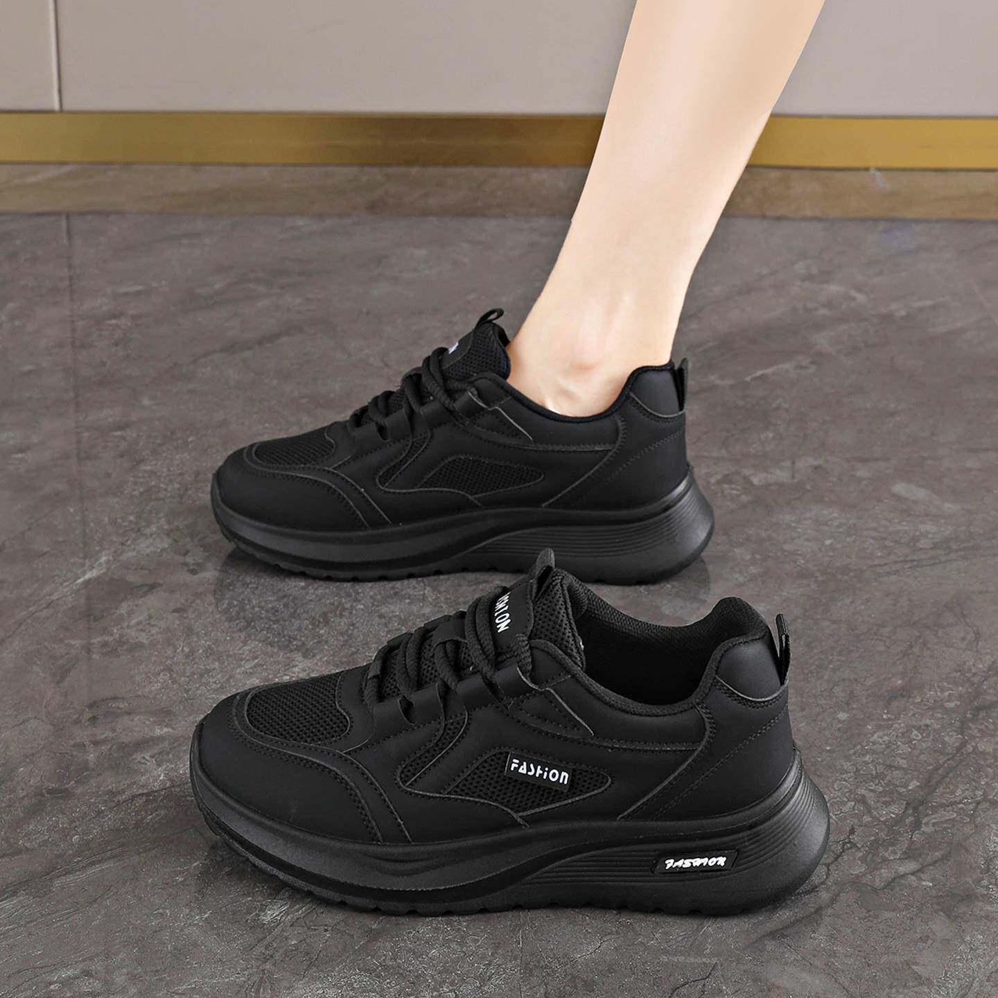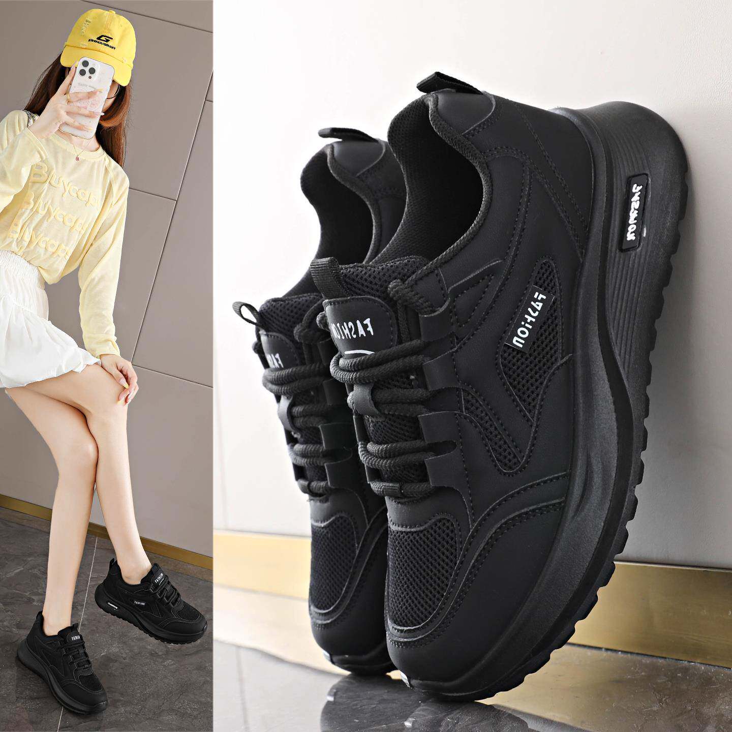 黑色女鞋2025新款秋季轻便透气休闲运动鞋不累脚软底防滑工作鞋子