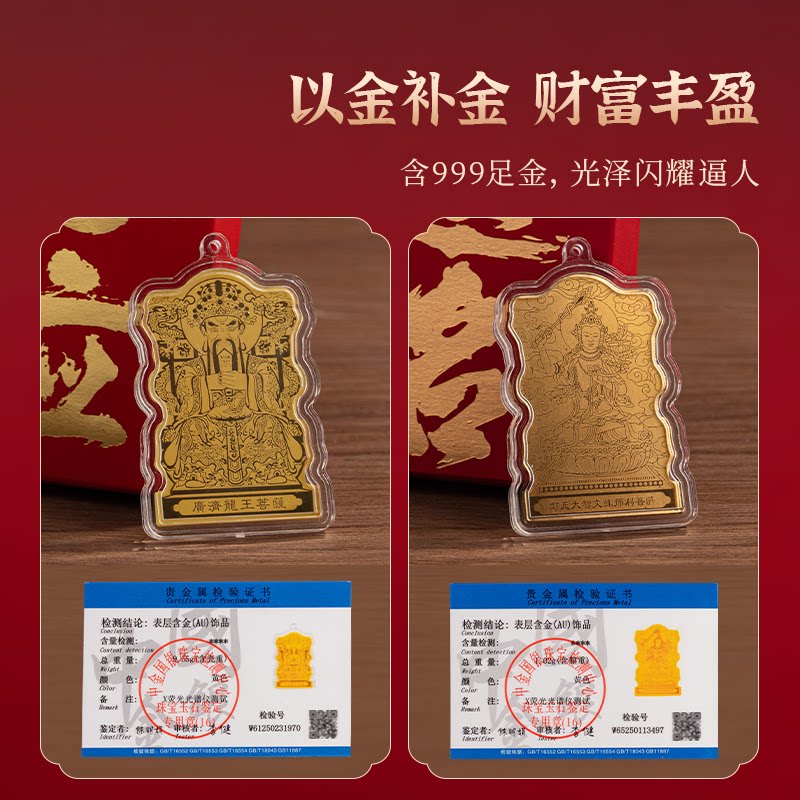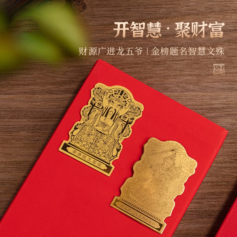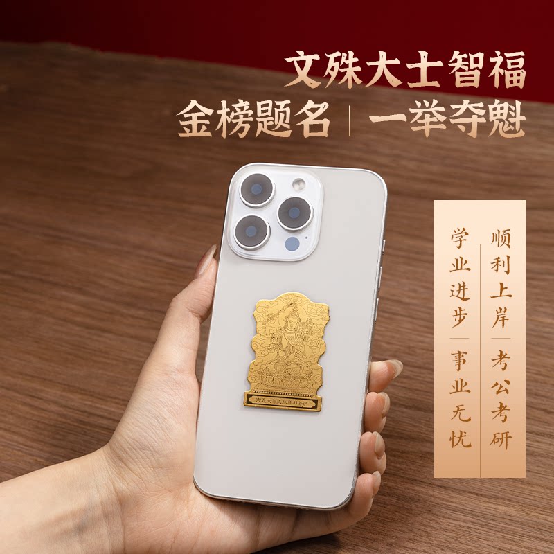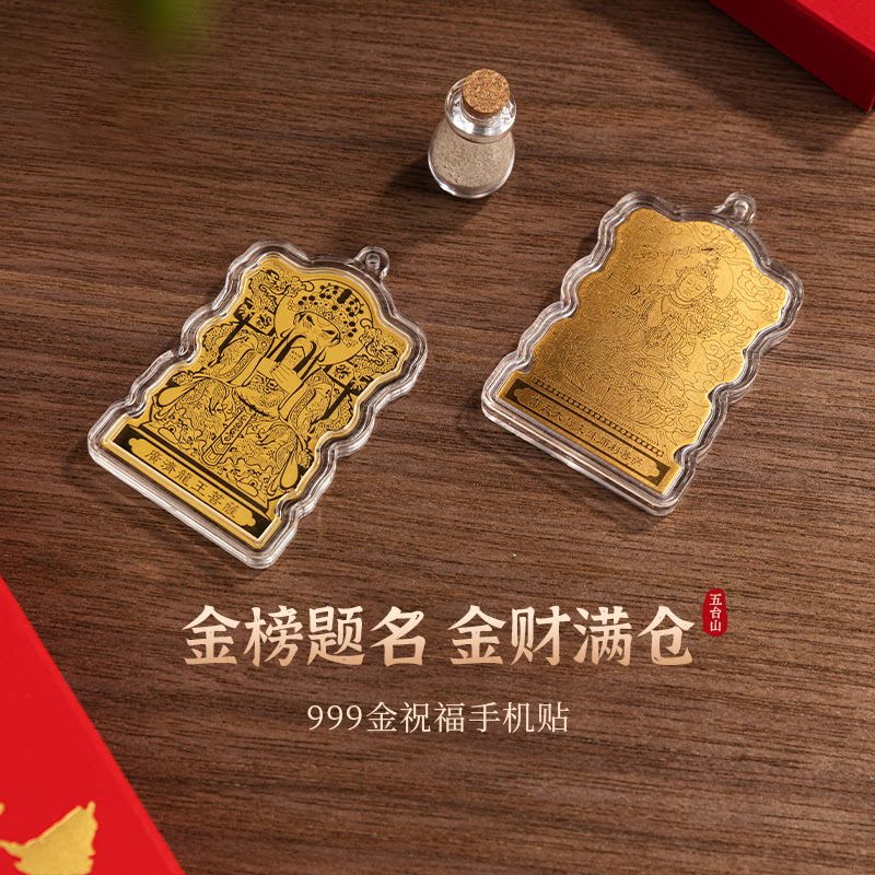 五台山藏尚999足金手机贴纸黄金文殊金榜题名五爷招财平板贴可挂