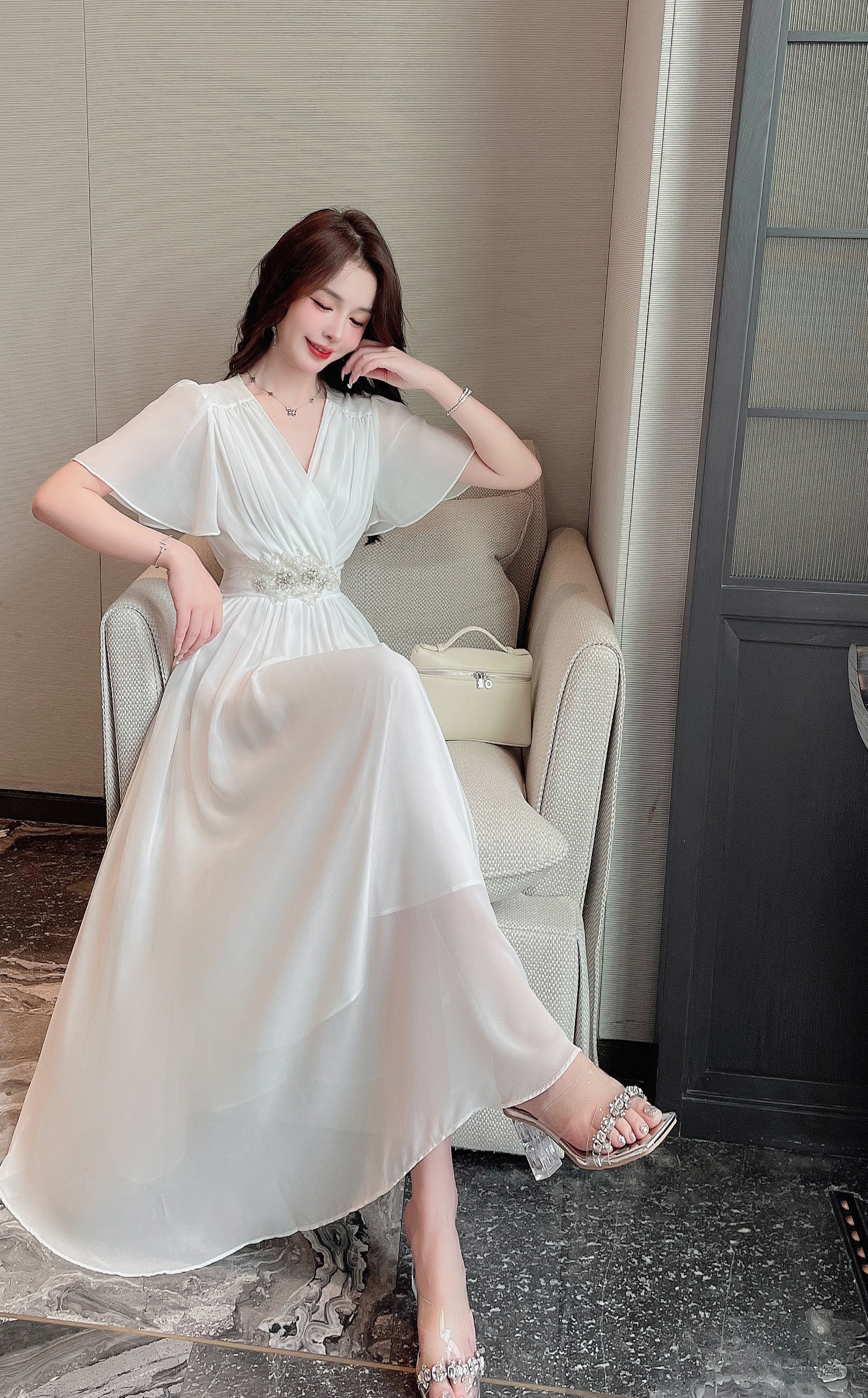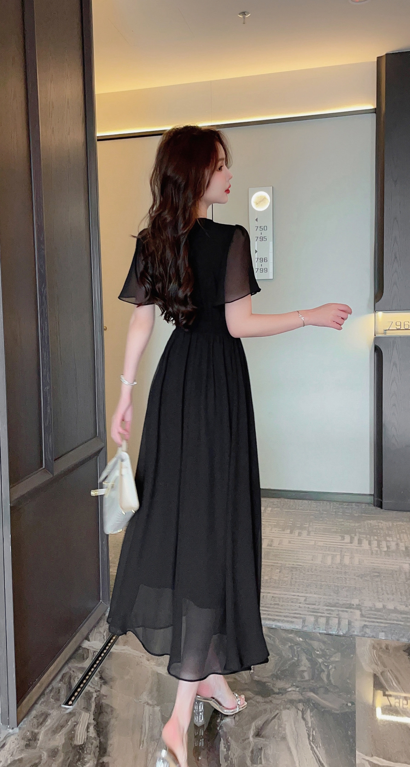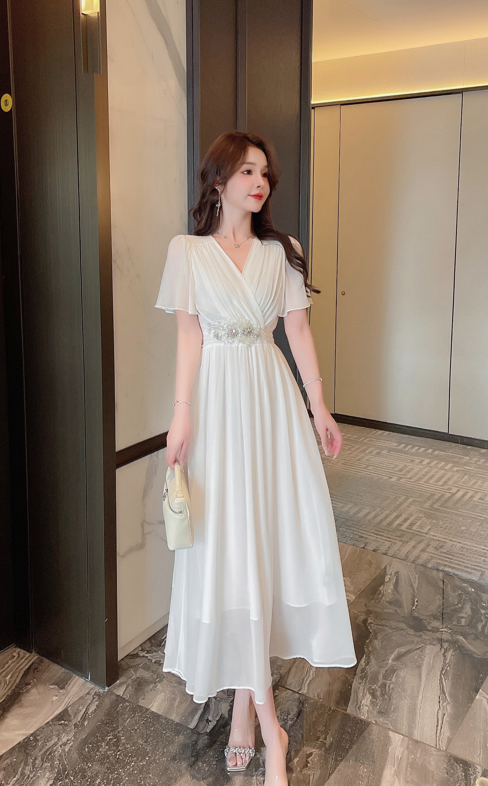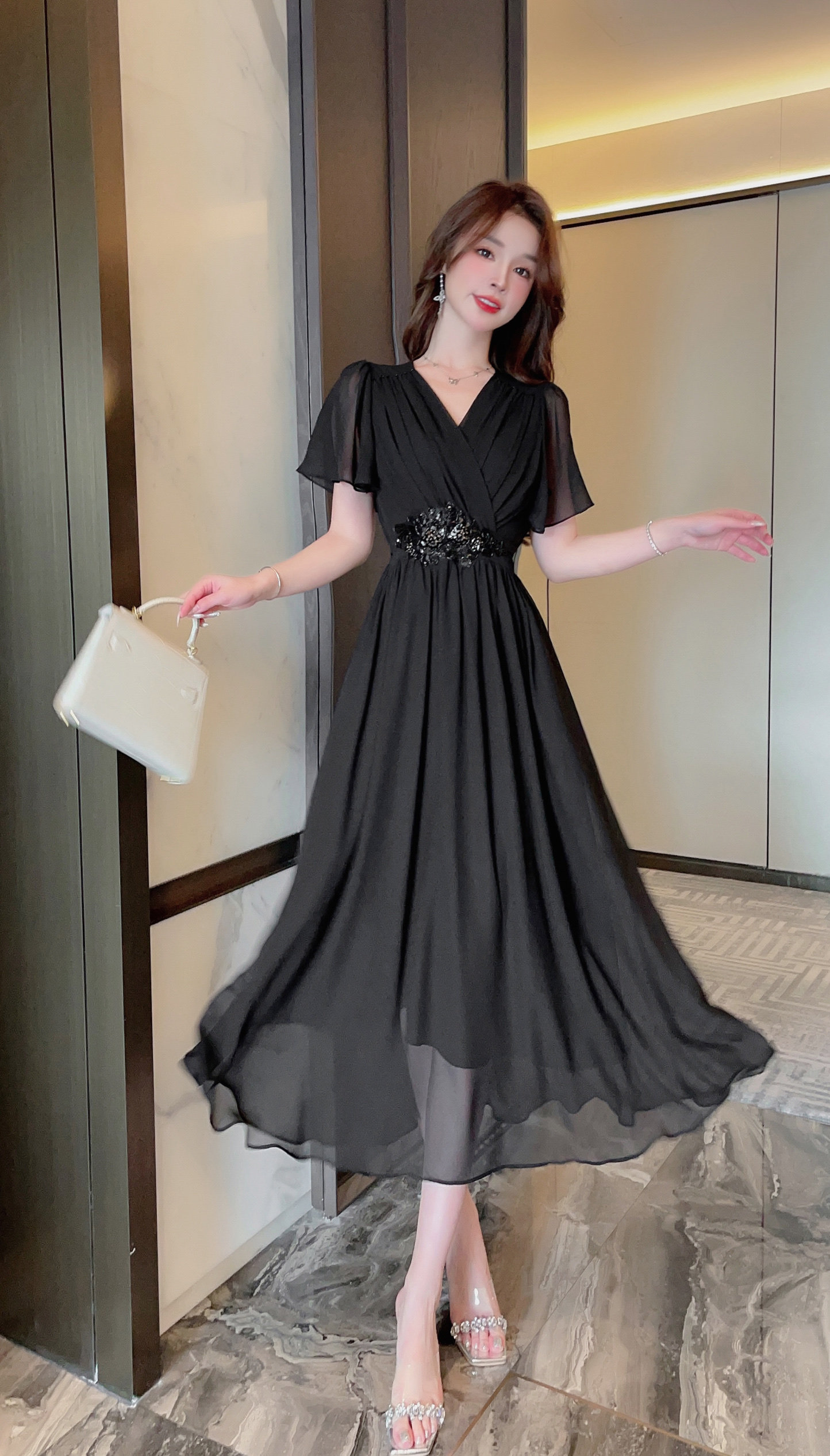 高级感轻奢重工气质真丝v领连衣裙女2026夏季新款礼服超仙长裙子