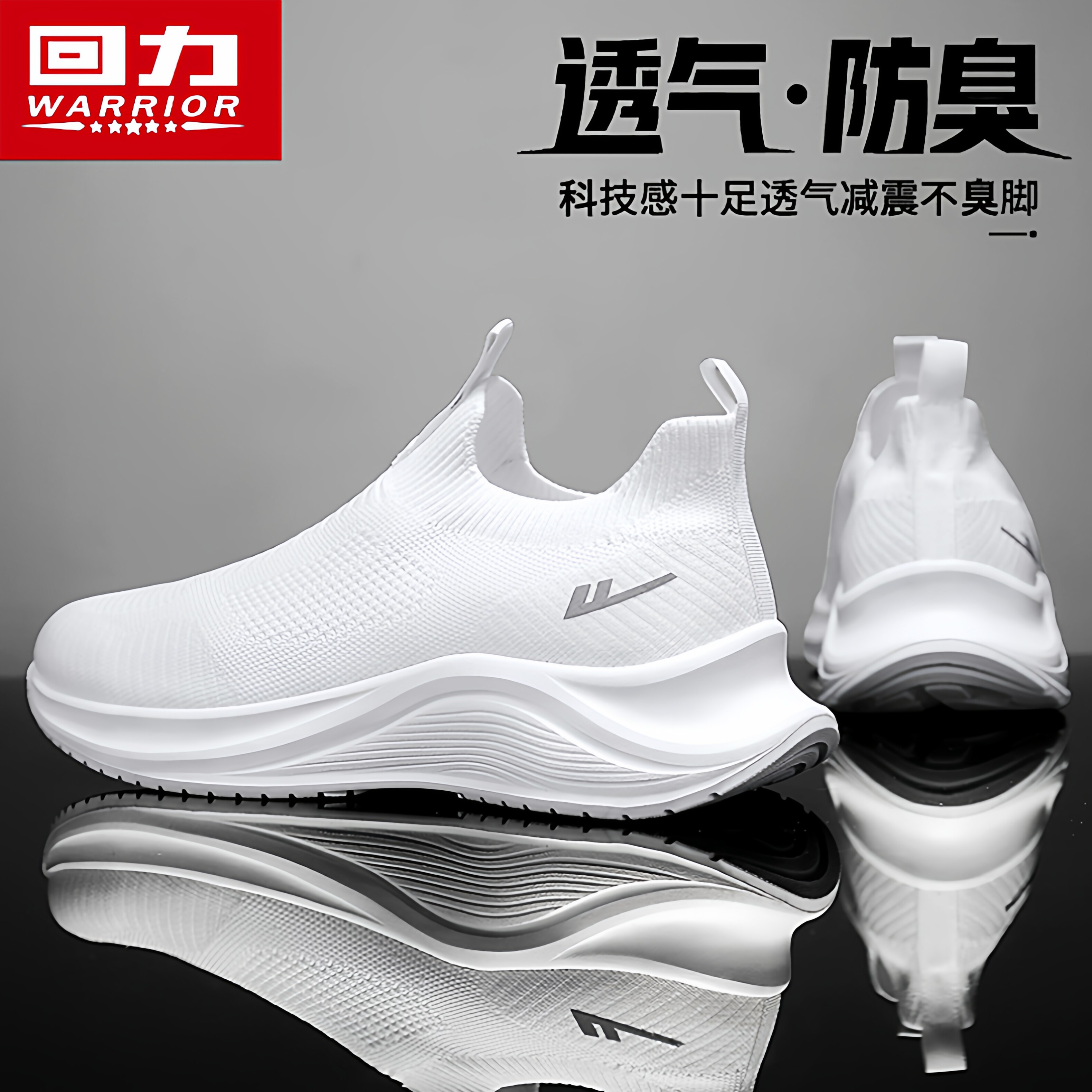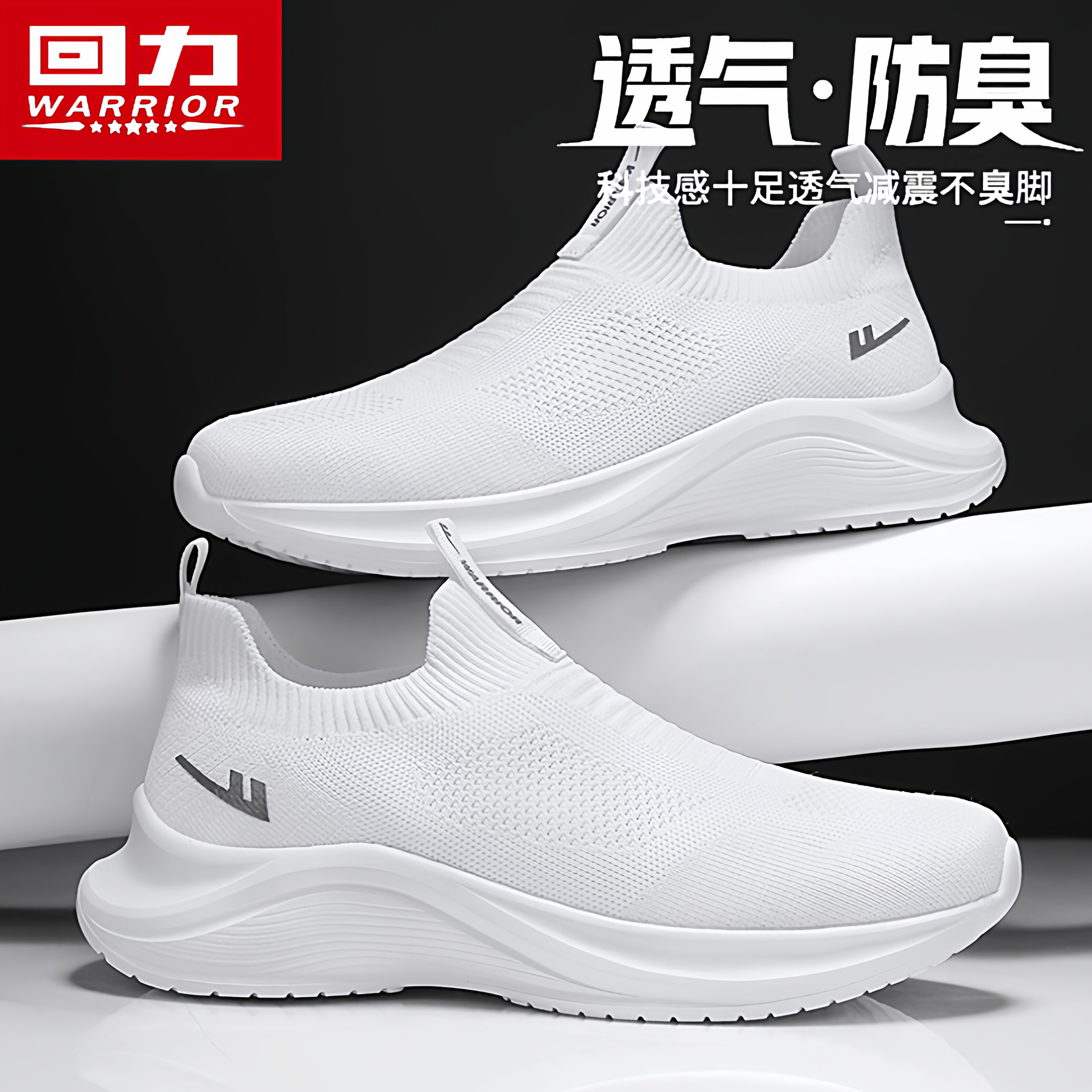 回力男鞋夏季透气飞织网面休闲运动袜子鞋一脚蹬跑步增高老爹潮鞋