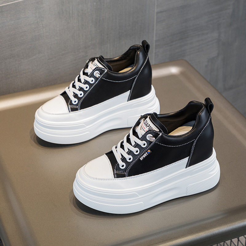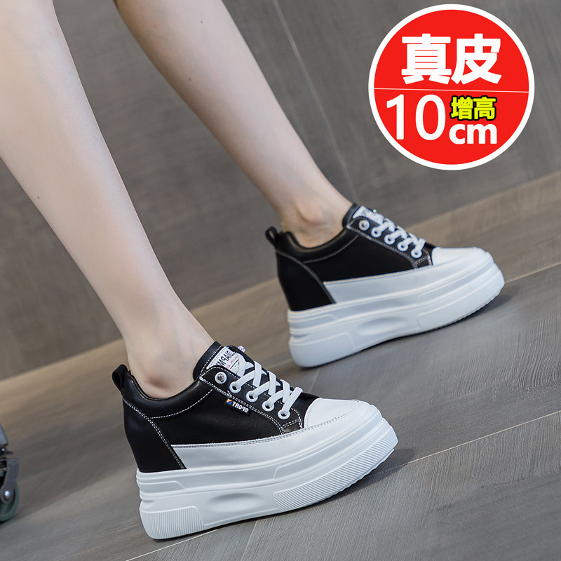春夏新款真皮内增高厚底小白鞋女皮面百搭10公分休闲运动鞋女鞋子