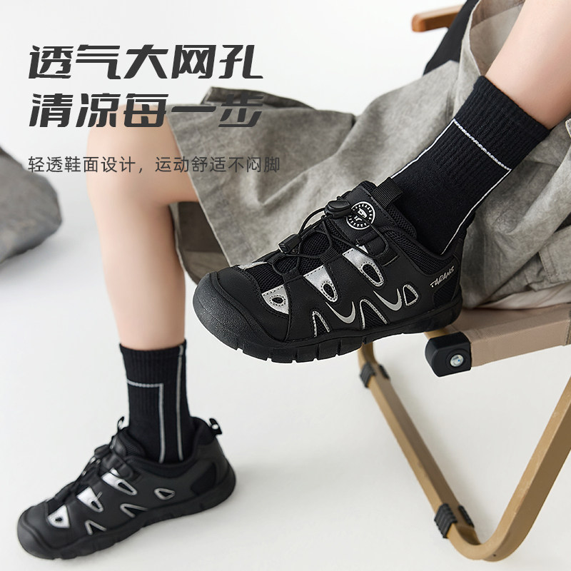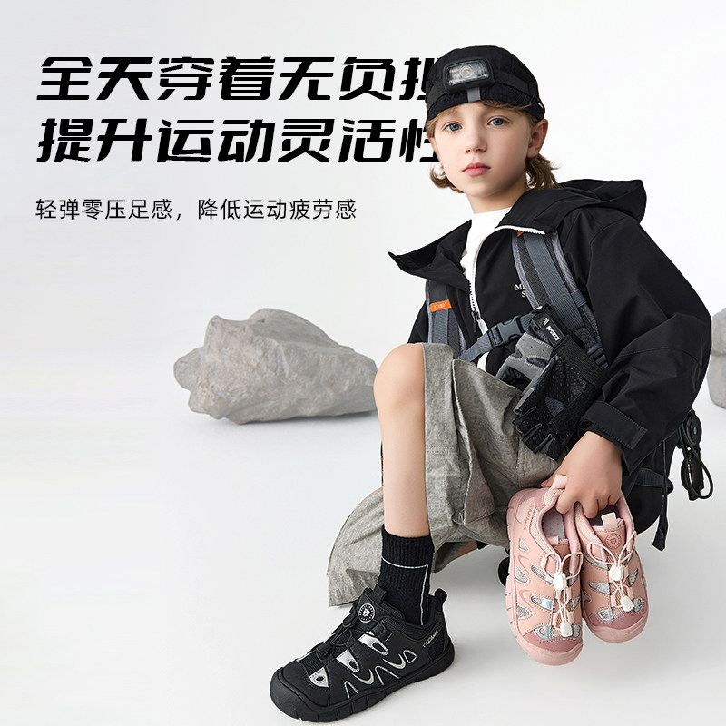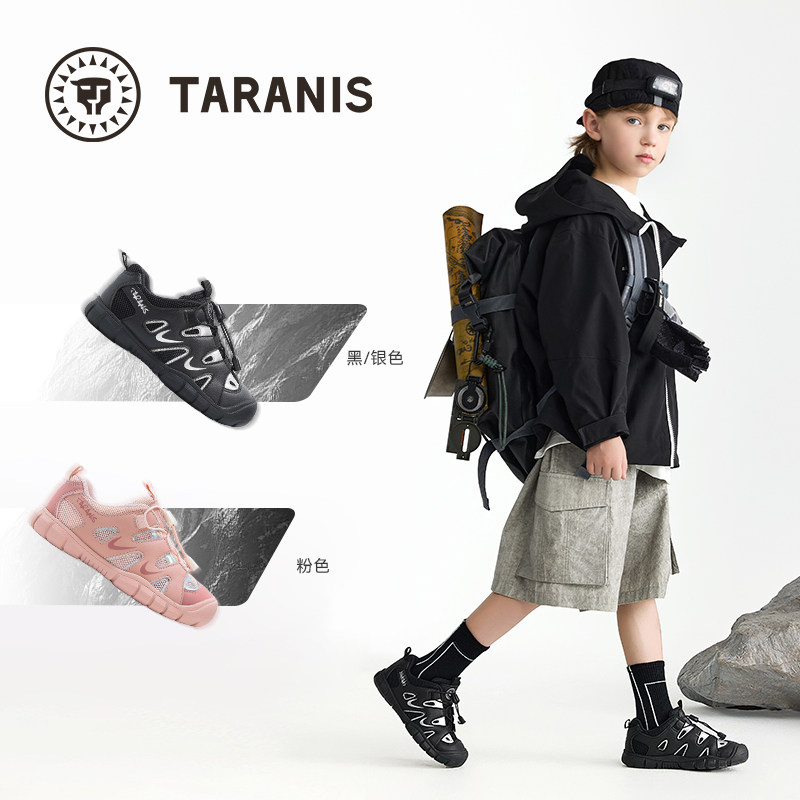 泰兰尼斯儿童春季户外运动鞋男童透气防滑软底女童露营旋钮鞋子