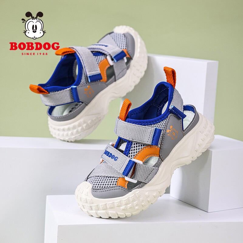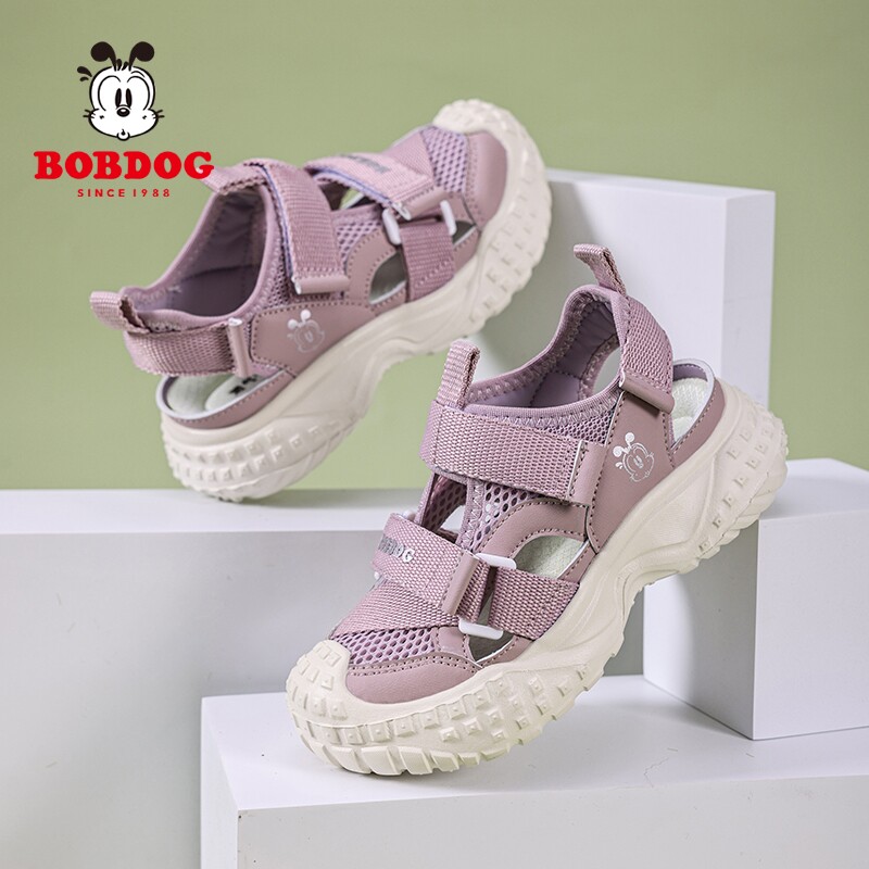 巴布豆女童凉鞋包头夏季新款防滑软底儿童鞋子透气网面男童框子鞋