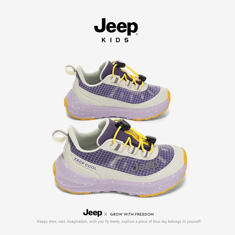 jeep高颜值女童鞋春季2026新款透气轻便防滑儿童小学生运动跑步鞋