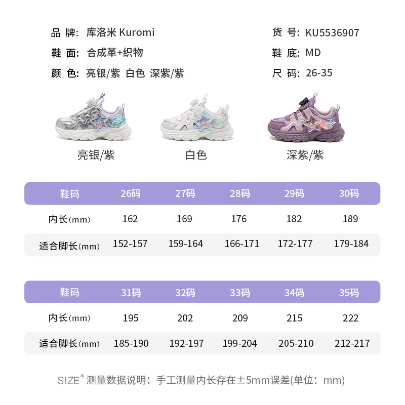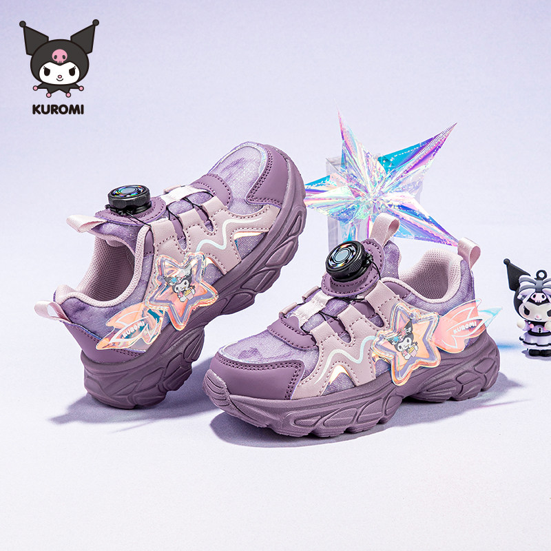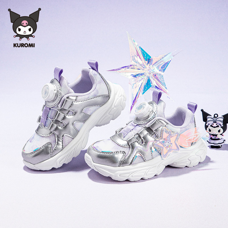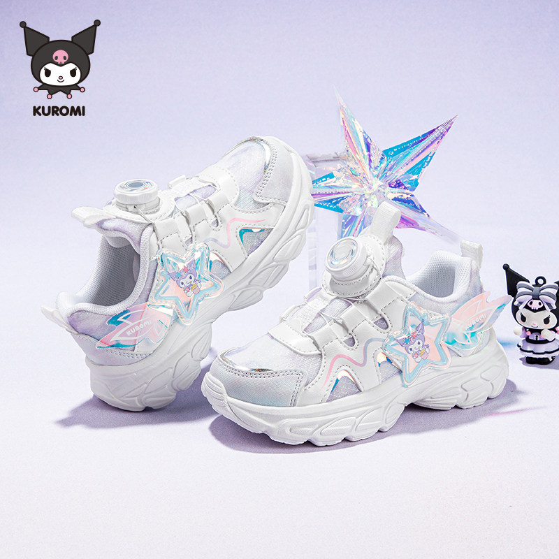 库洛米女童运动鞋春秋新款运动户外密网跑步鞋女孩纽扣休闲鞋
