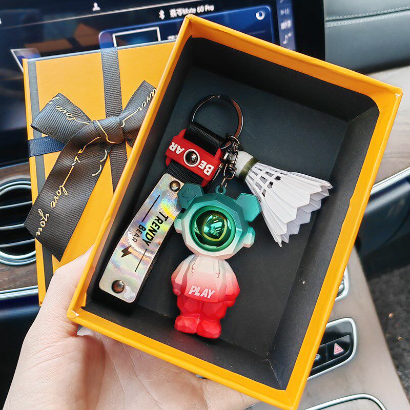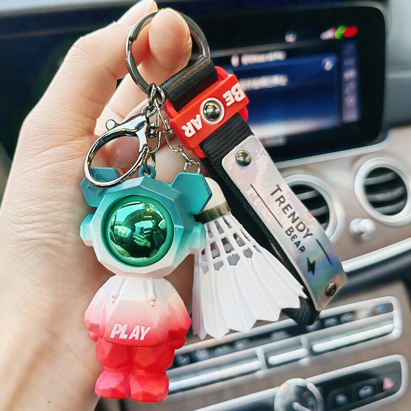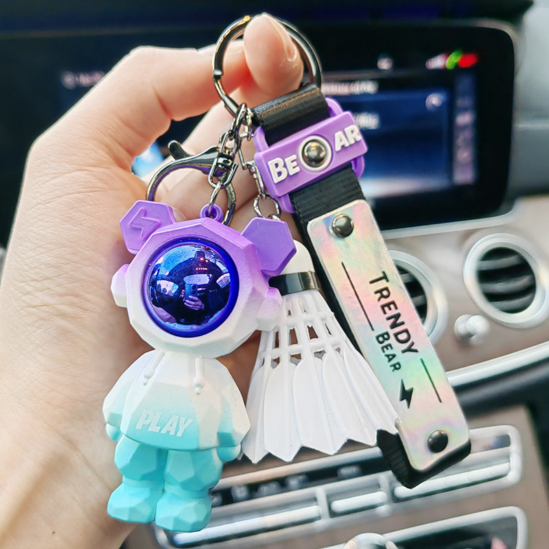 创意渐变闪电熊羽毛球挂件男生情侣礼品精致钥匙扣羽毛球包挂饰女