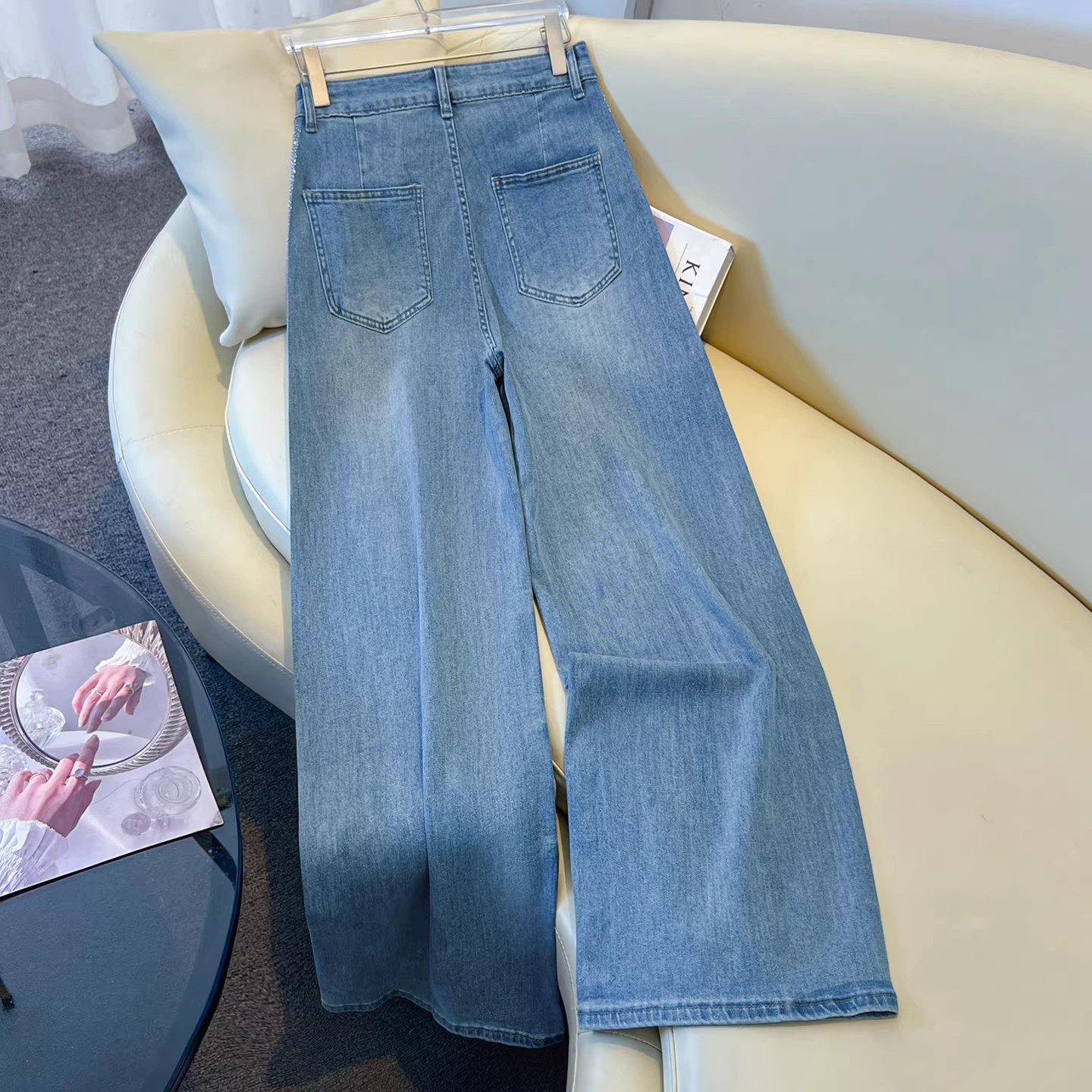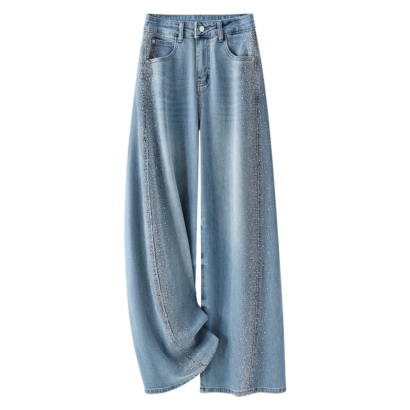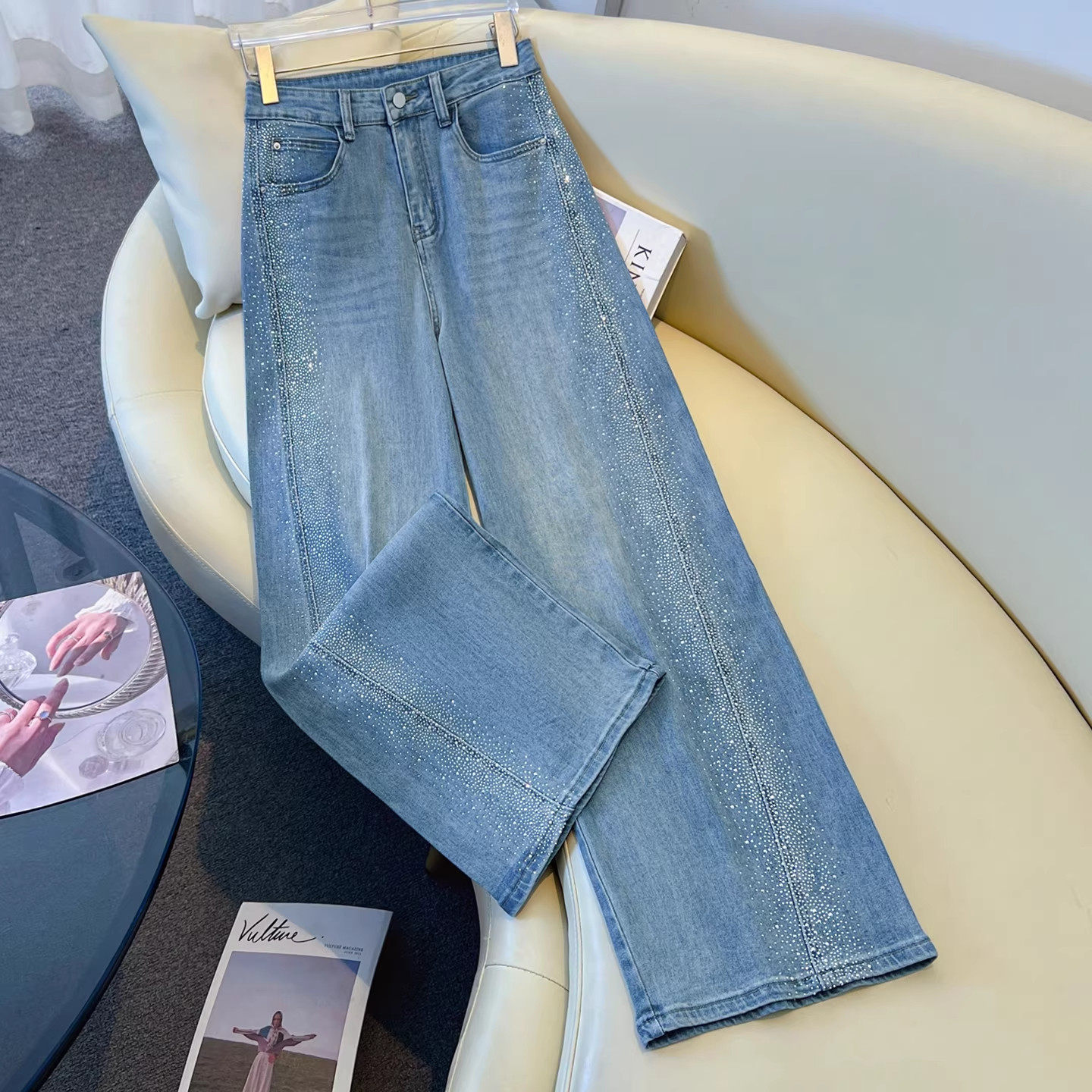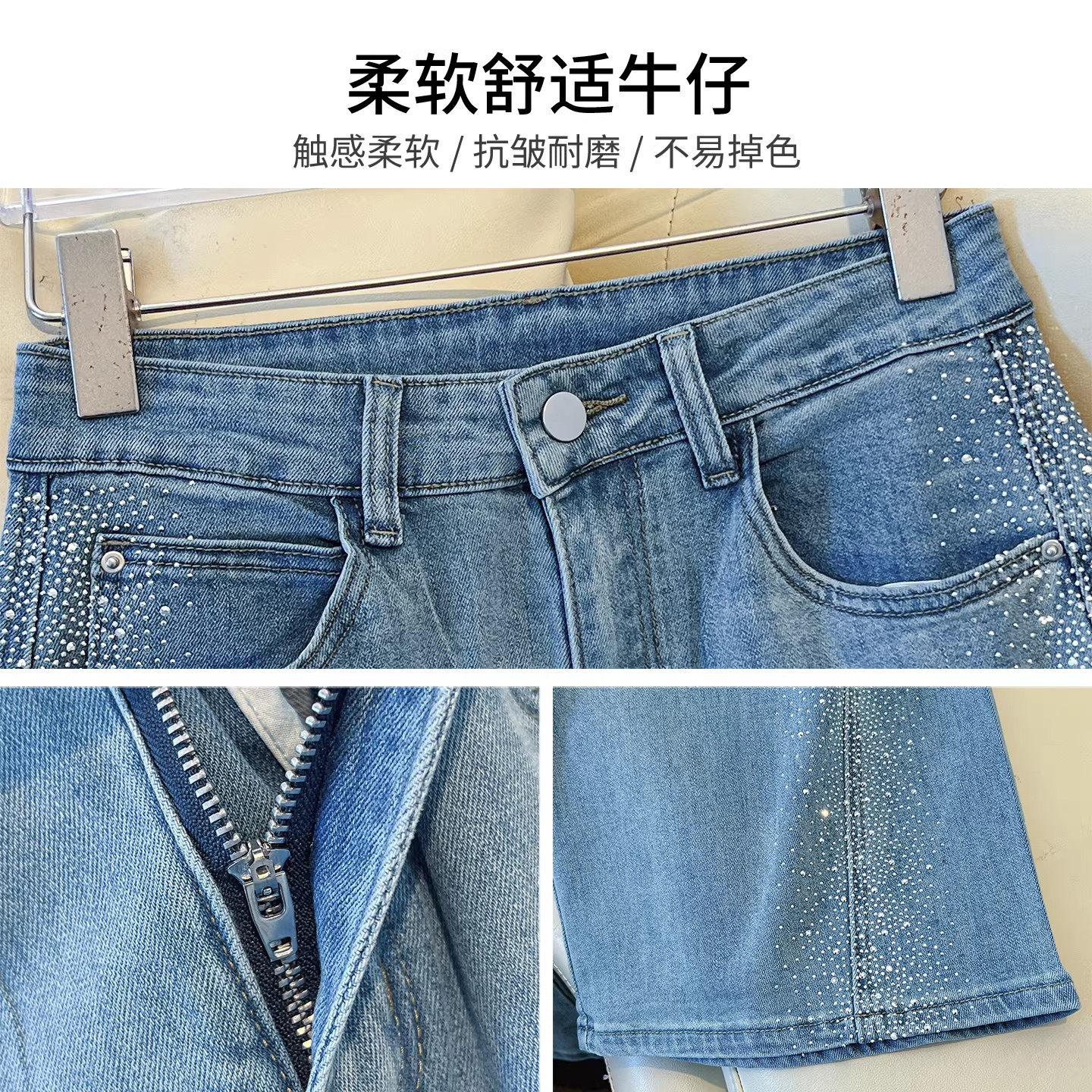 气质烫钻阔腿牛仔裤女春季2026新款今年流行爆款满天星九分直筒裤