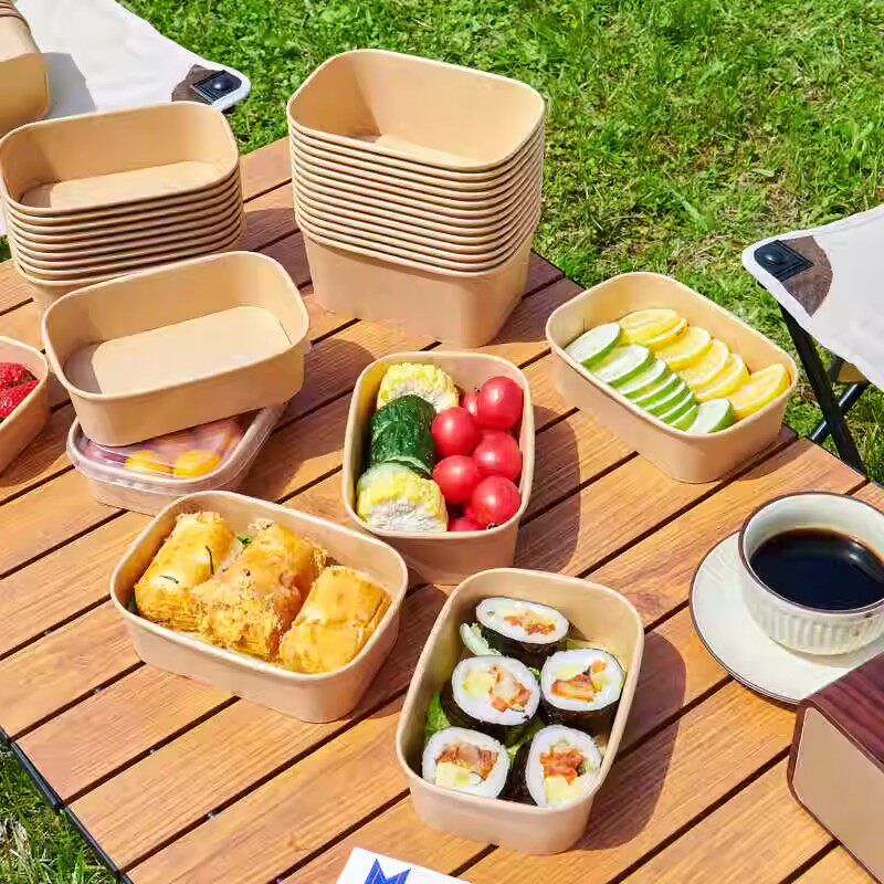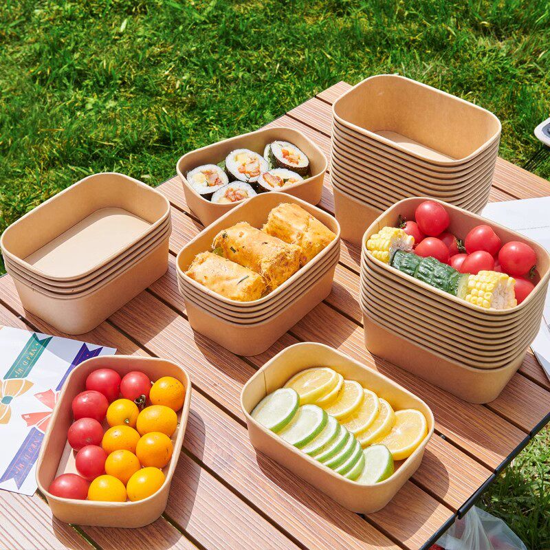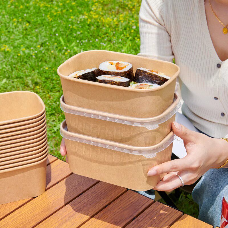 一次性餐盒牛皮纸方形打包盒水果快餐饭盒轻食野餐便当纸盒沙拉盒