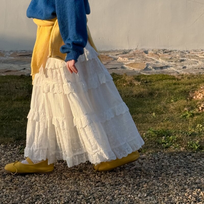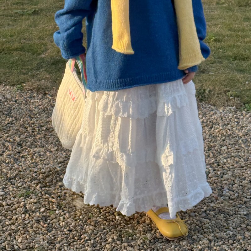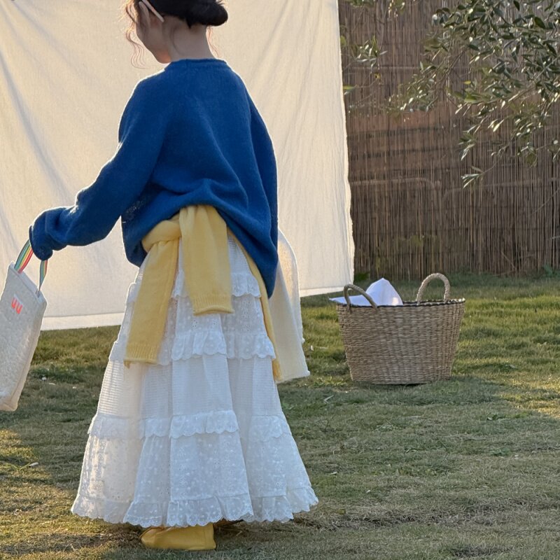 女童纯色花边半身裙春季新品韩系女宝宝洋气宽松蛋糕裙长款裙子韩