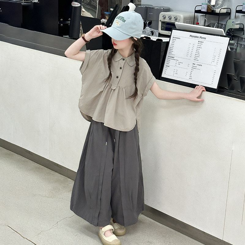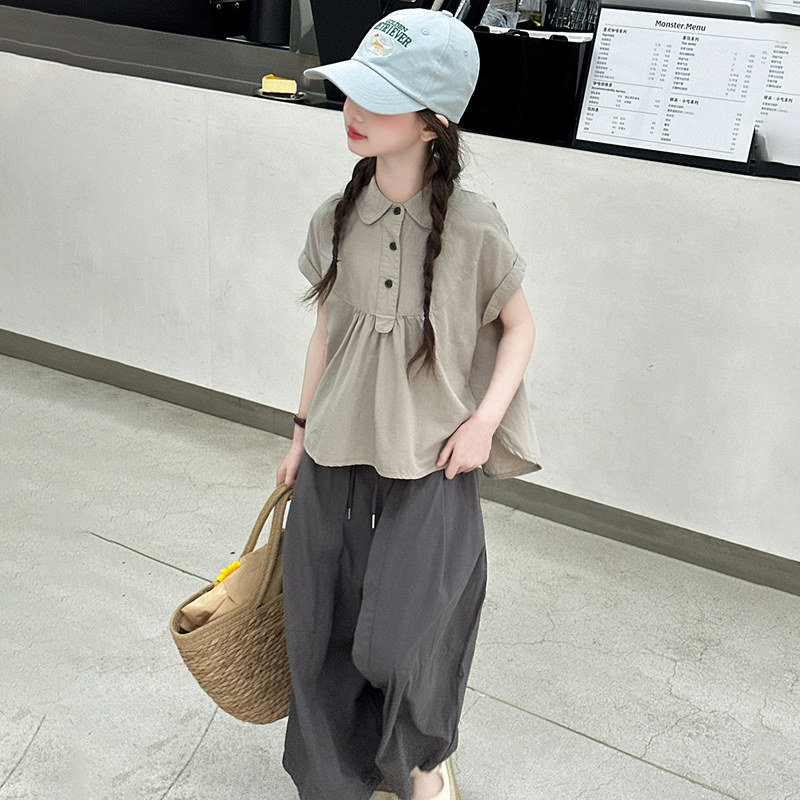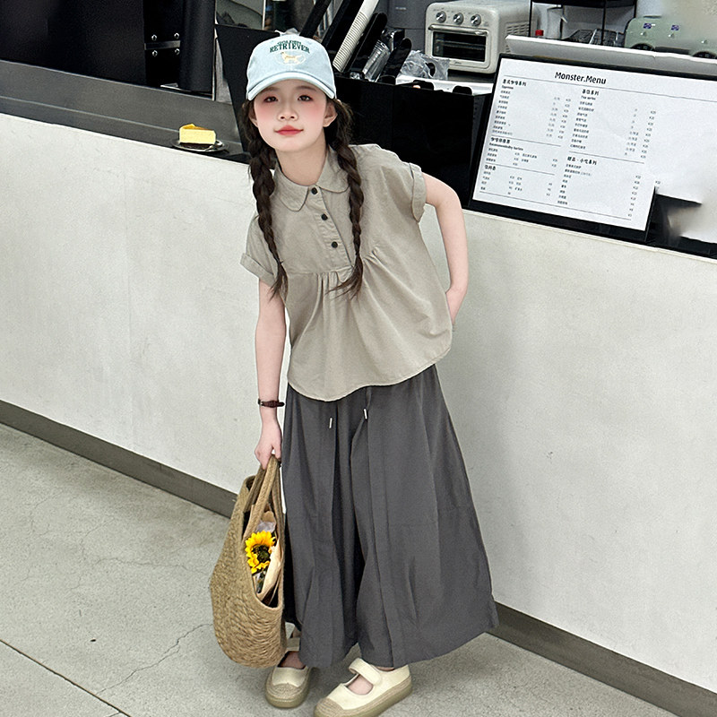 女童夏季棉布套装2026新款洋气女大童夏装短袖儿童韩系穿搭裙裤子