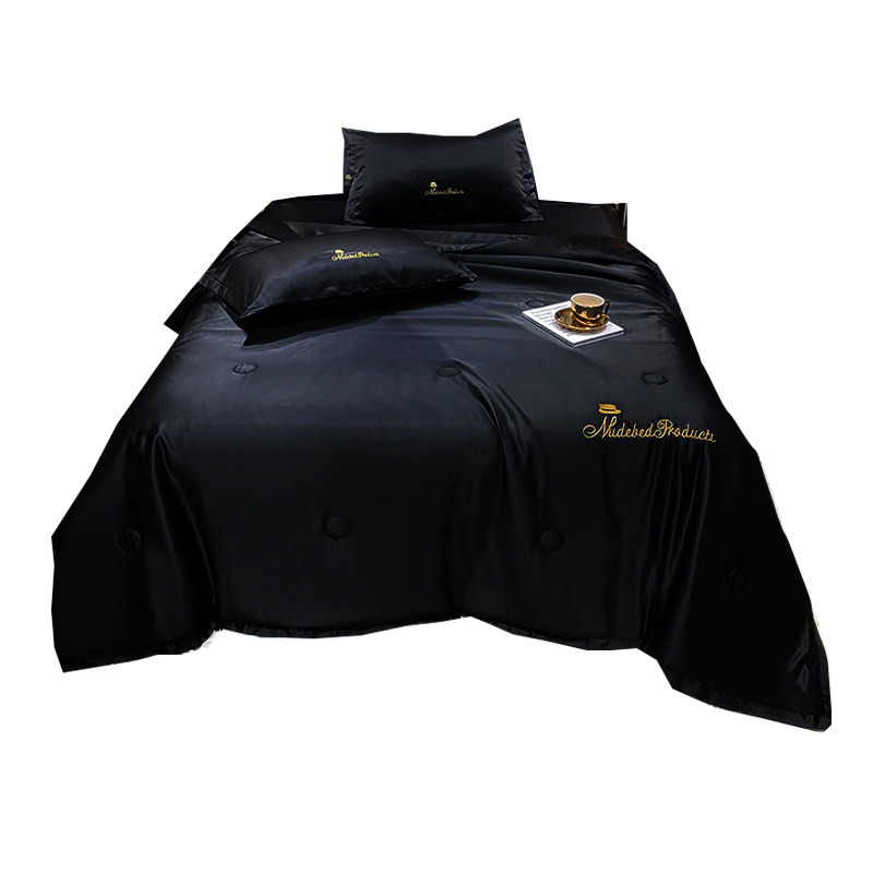 黑色夏凉被四件套空调被夏季冰丝薄被芯真丝被子床上天丝夏被床单