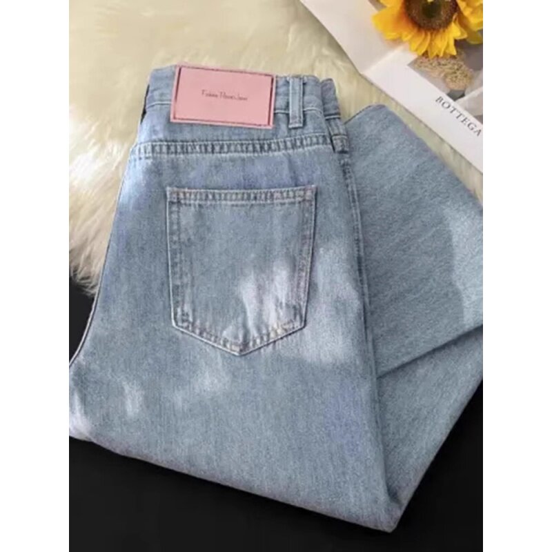 美式高街浅蓝色牛仔裤男秋冬季2026新款潮牌宽松直筒休闲阔腿裤子