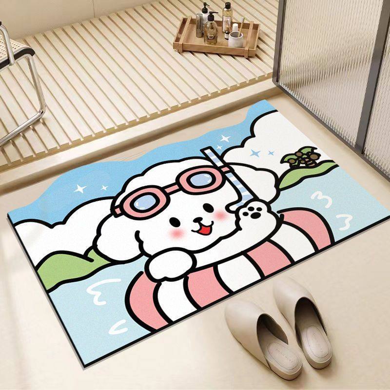 线条小狗浴室地垫家用硅藻泥吸水垫子卫生间厕所门口速干防滑脚垫