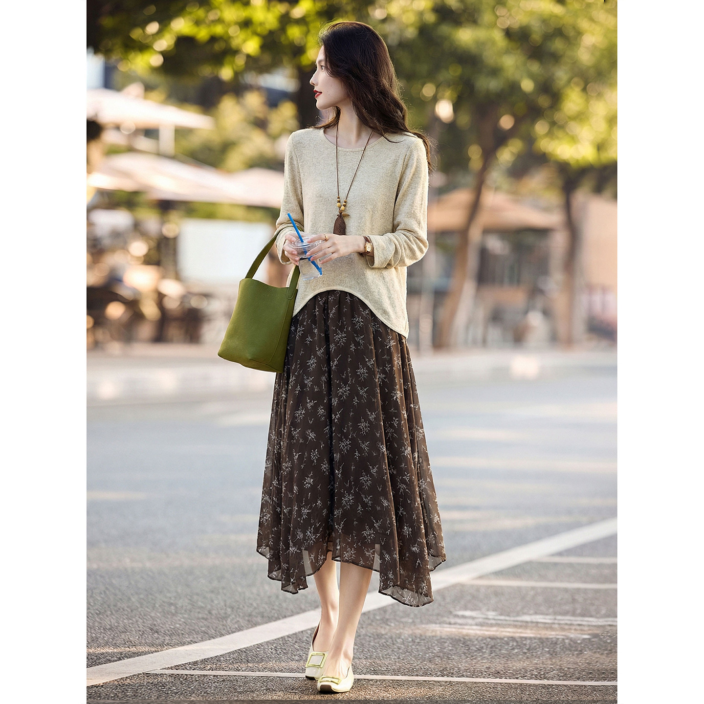 2026春季新款女装长款打底衫上衣T恤半身裙两件套早春漂亮套装