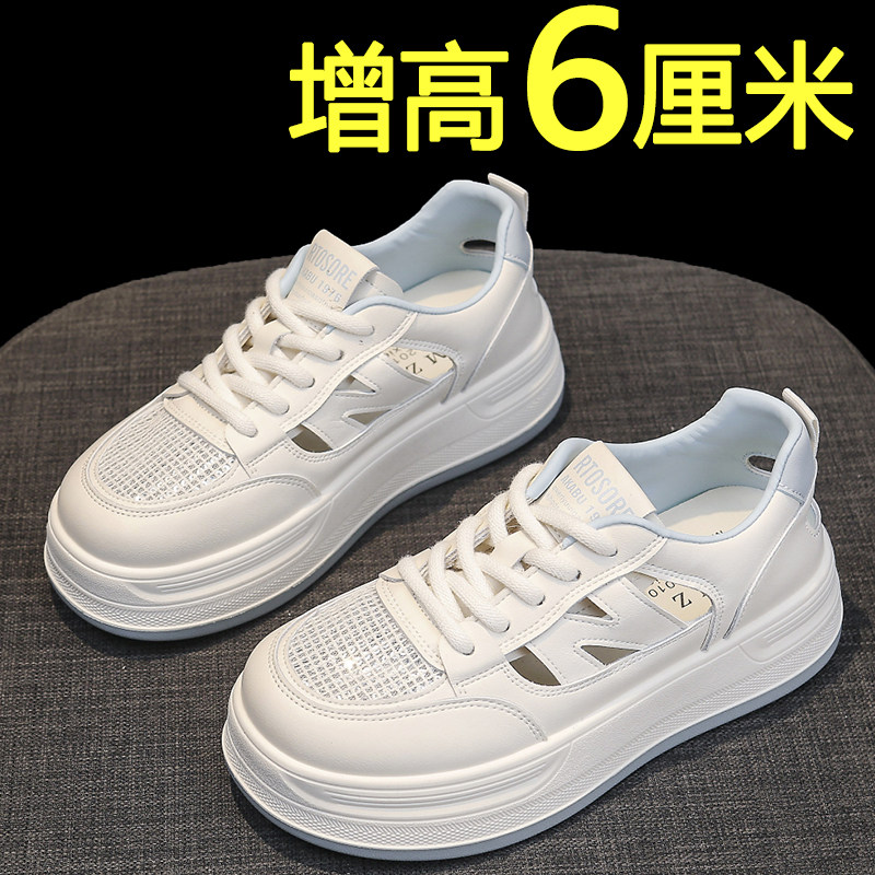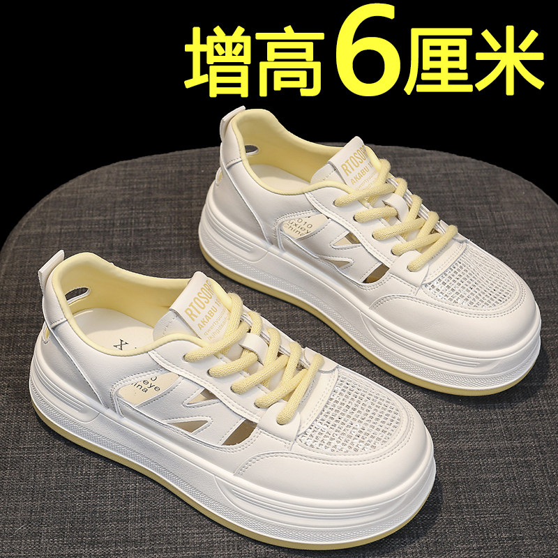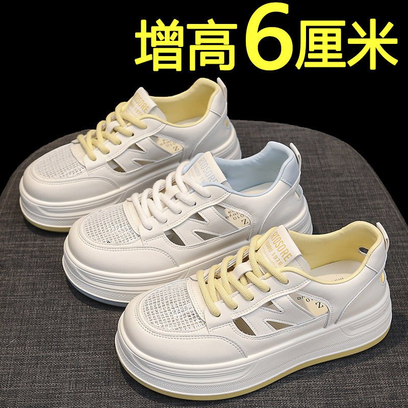 镂空小白鞋女2026新款夏季百搭透气厚底休闲板鞋网面内增高运动鞋