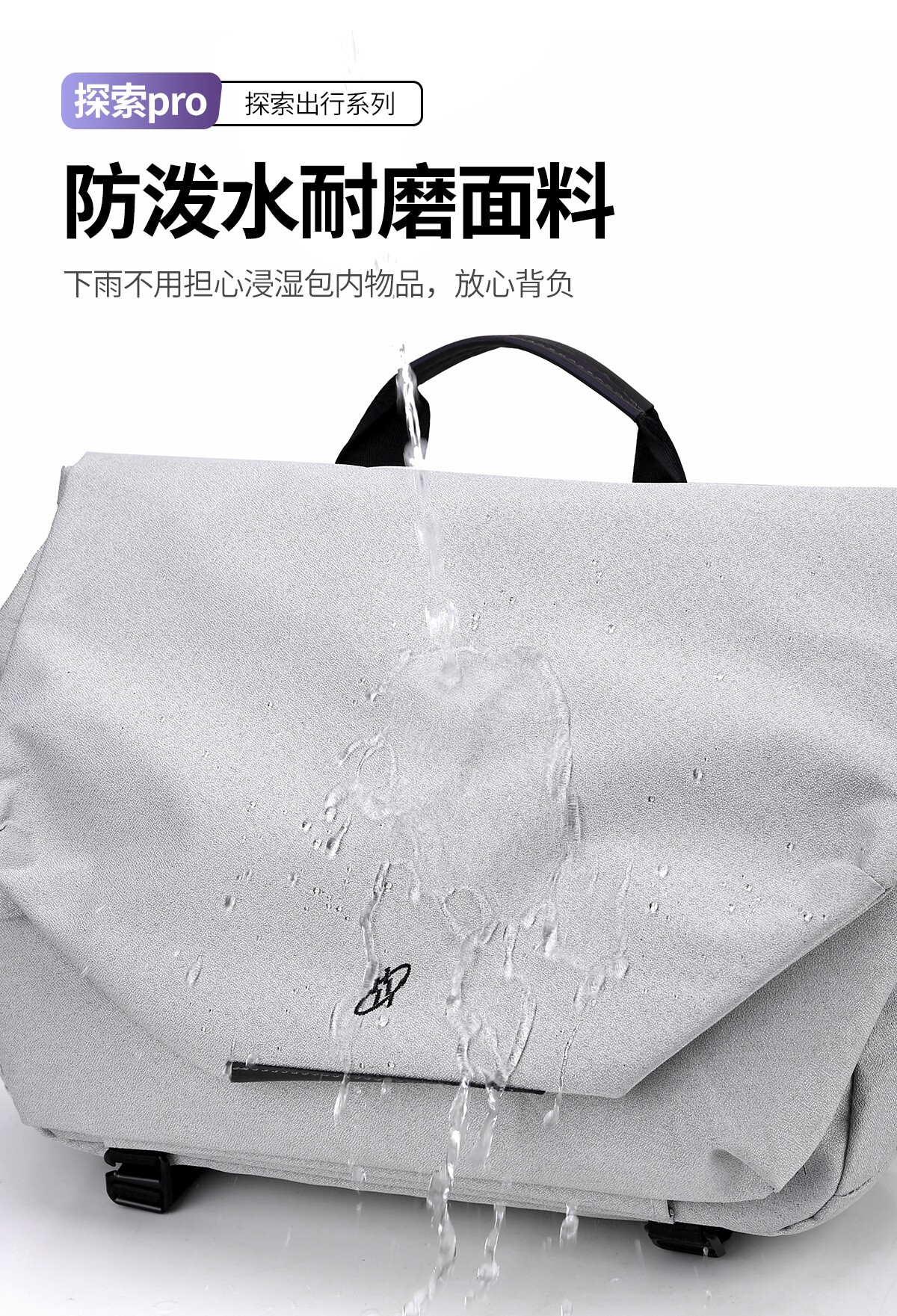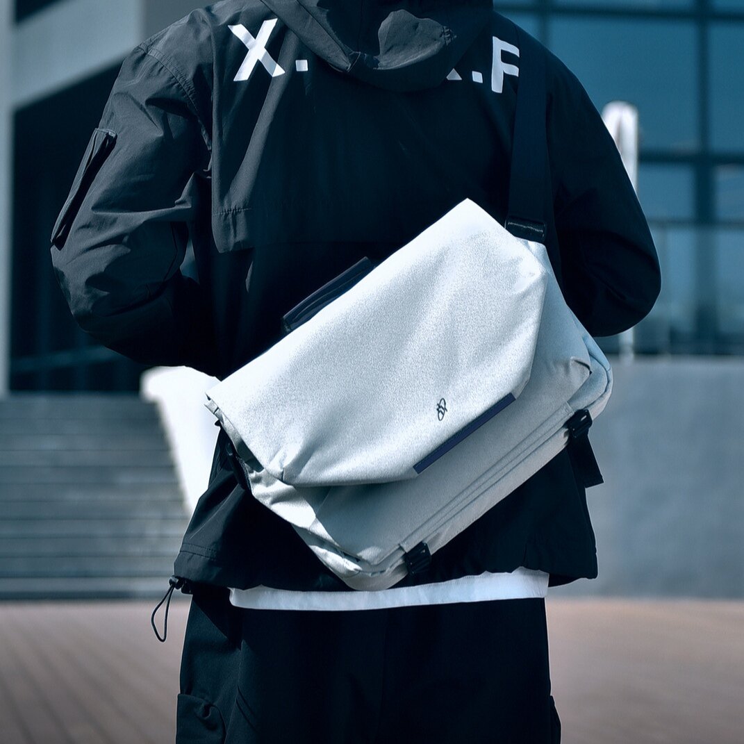 潮牌男士斜挎包防水牛津布磁吸扣单肩背包邮差包机能骑行包白色