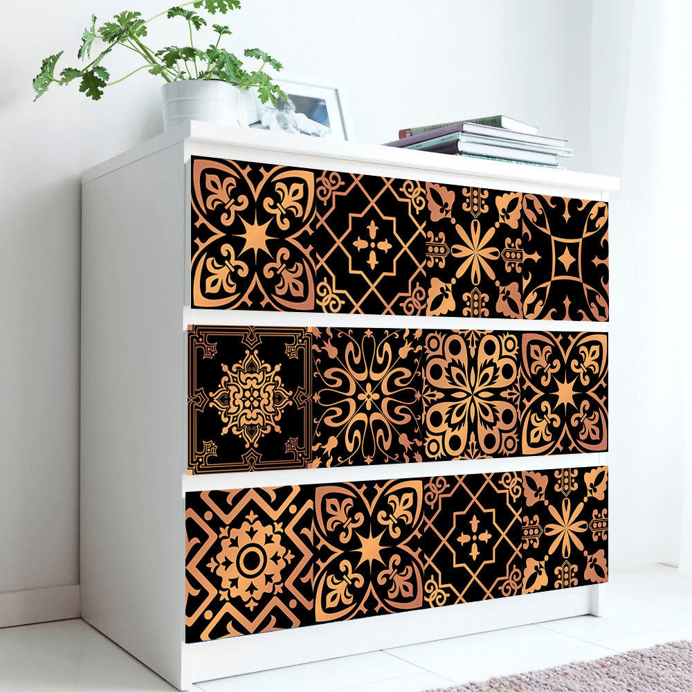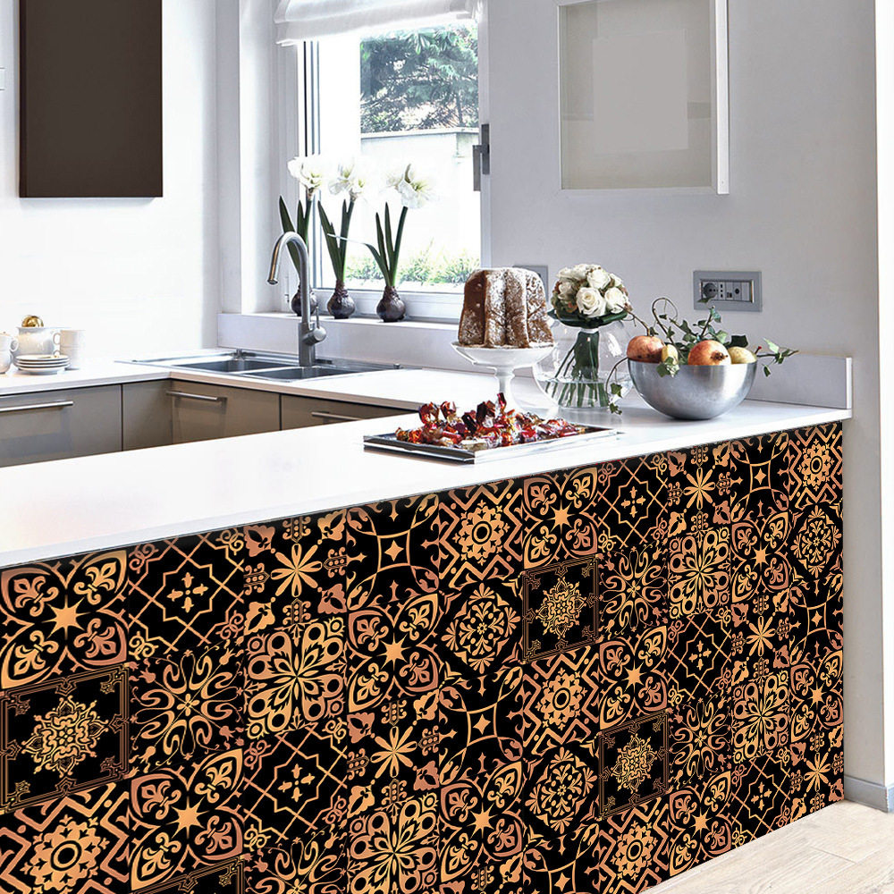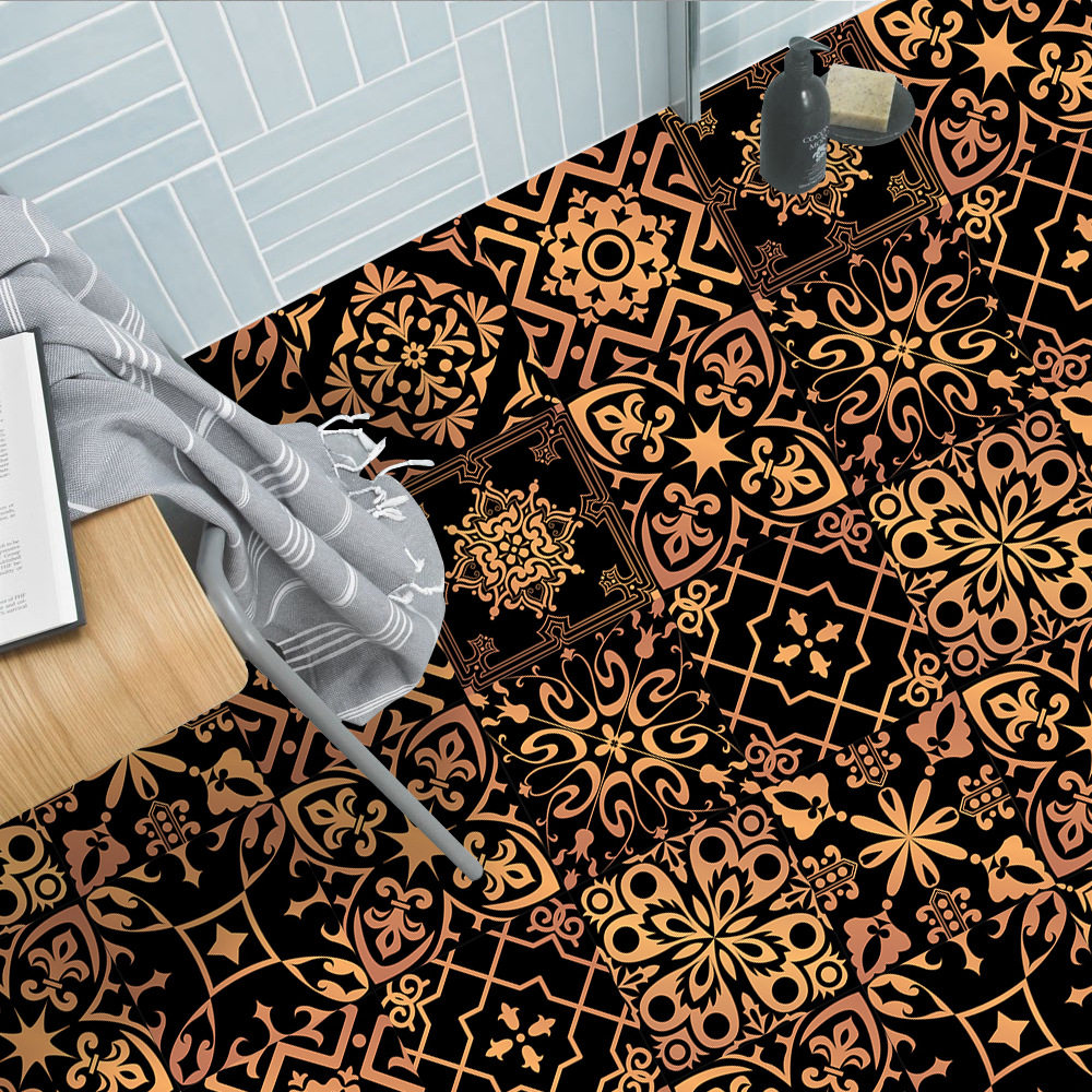 鎏金花纹地板楼梯墙面瓷砖贴家居翻新厨房浴室美化装饰自粘墙贴纸