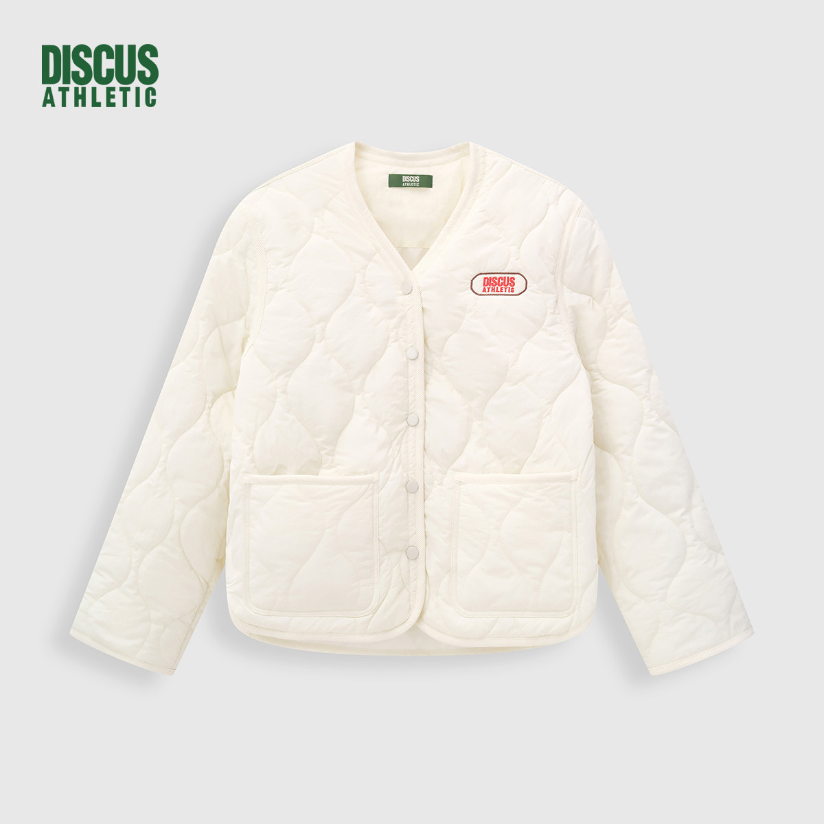 DISCUS2025冬季女款轻薄棉服轻便圆领车缝纹理锁棉时尚棉服外套