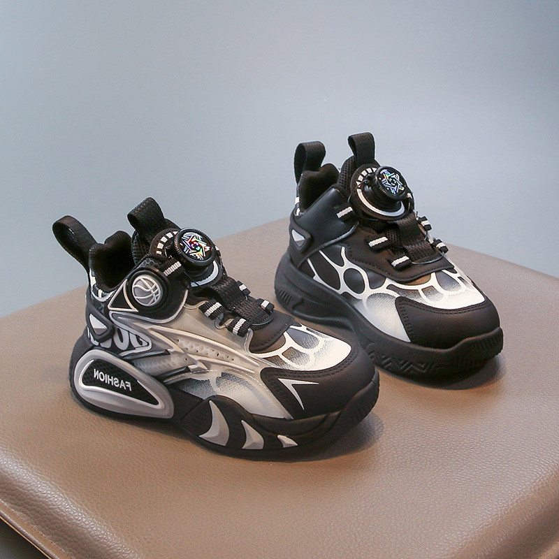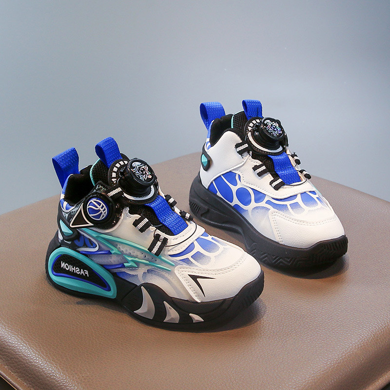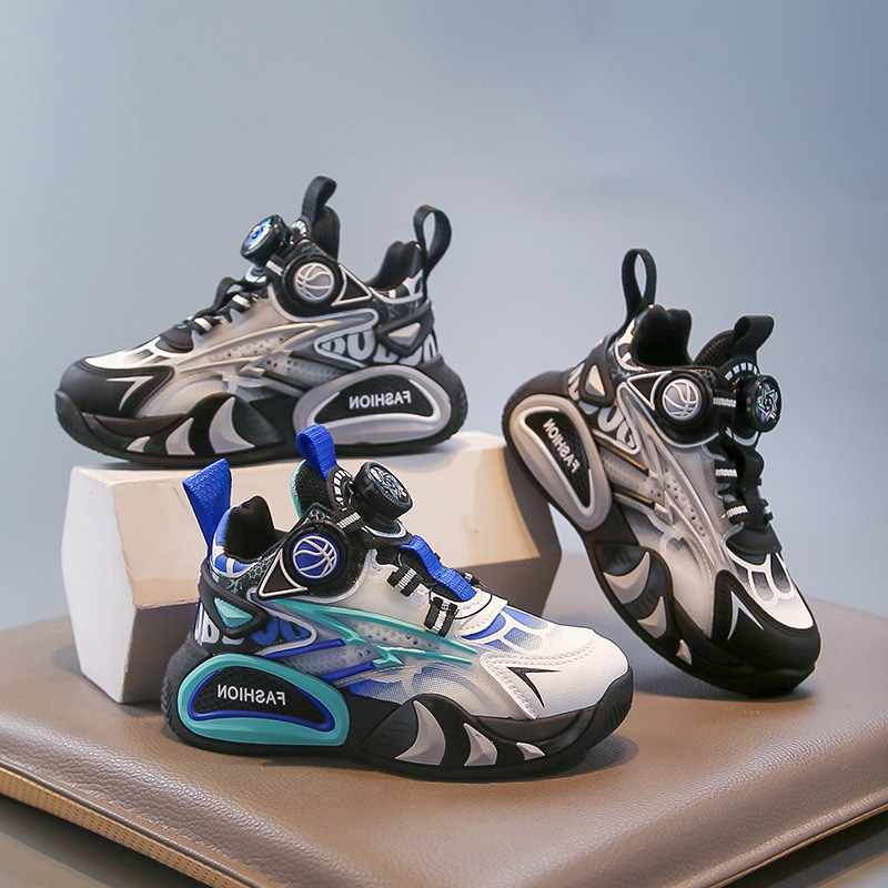 男童鞋子透气防臭运动鞋中大童旋转纽扣3到5岁软底网面球鞋高脚背