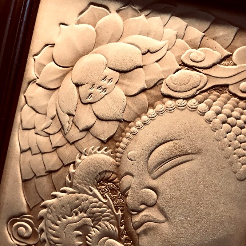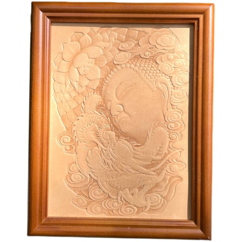 植鞣革皮雕皮艺头层牛皮起鼓大日如来装饰画玄关布景摆件挂件diy
