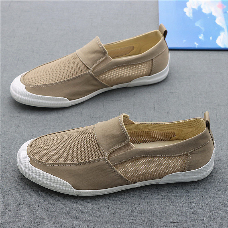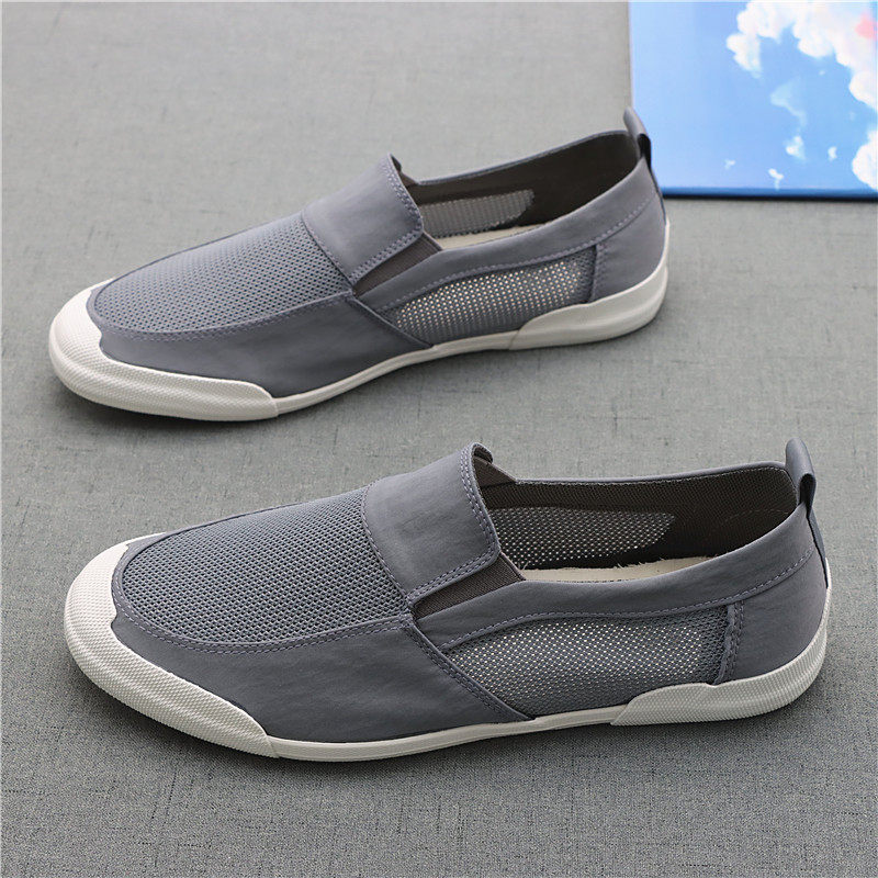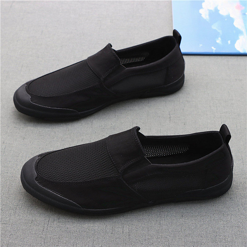 男鞋夏季薄款透气防臭布鞋男款一脚蹬懒人网布帆布鞋男轻薄休闲鞋