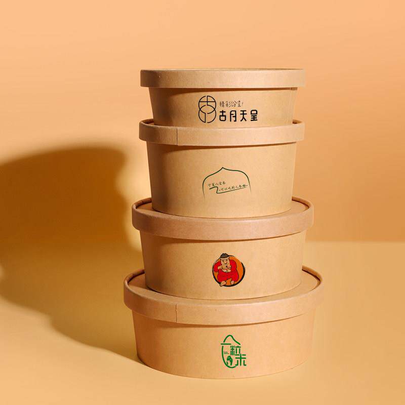 牛皮纸碗打包盒一次性圆形带盖子汤碗粥桶商用水果切沙拉碗外送餐