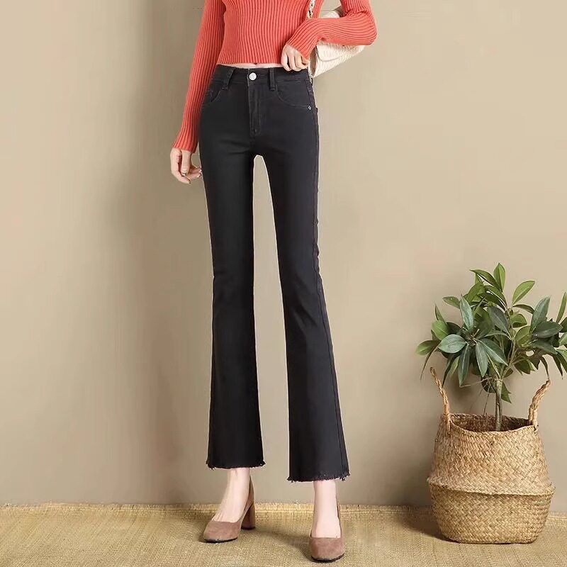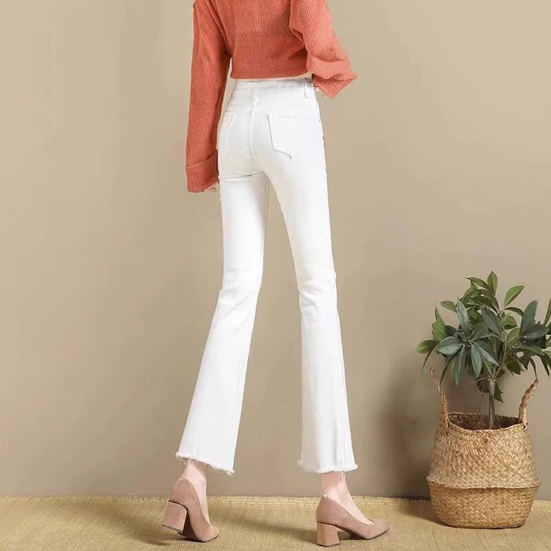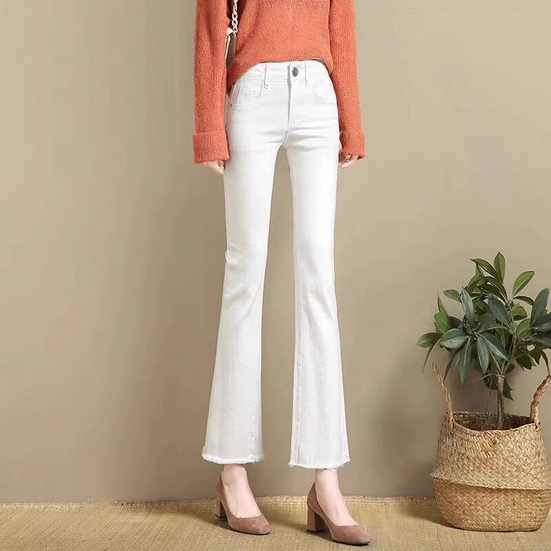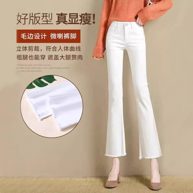 高端白色微喇叭牛仔裤女2026春夏新款小个子八分女士薄款直筒裤子