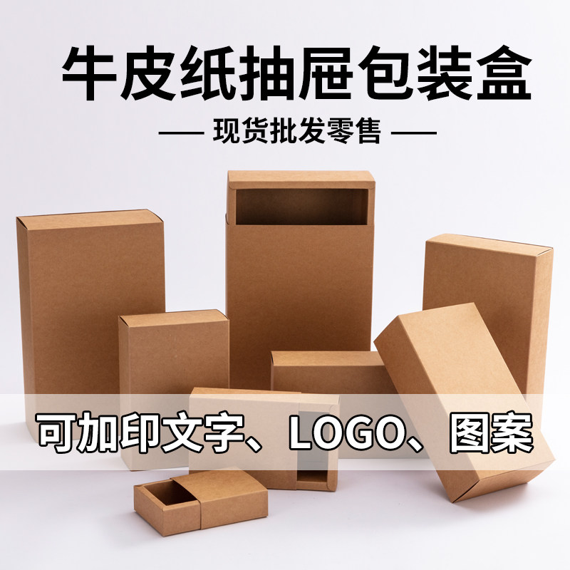 现货牛皮纸盒抽屉盒花茶叶包装盒阿胶糕长方形礼品盒印刷LOGO定制