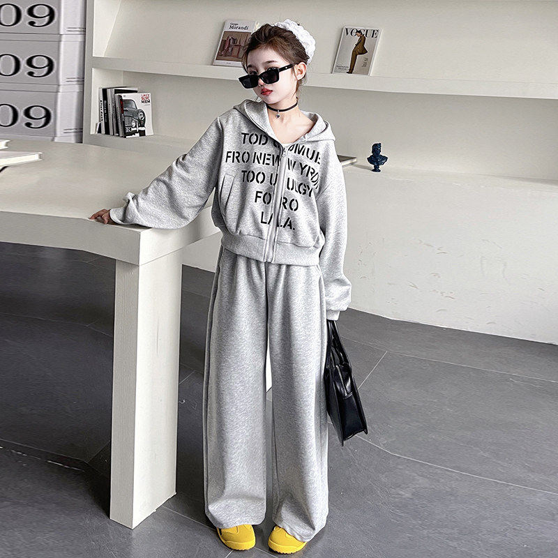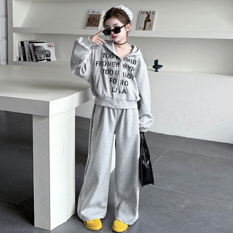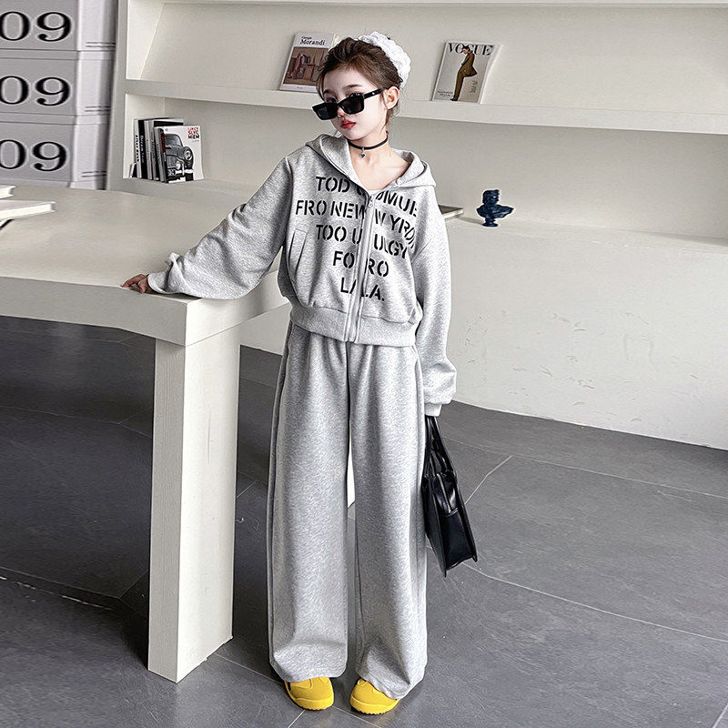 女童韩版洋两件套春秋运动套装外套儿童派裤新款2026卫衣阔腿春装