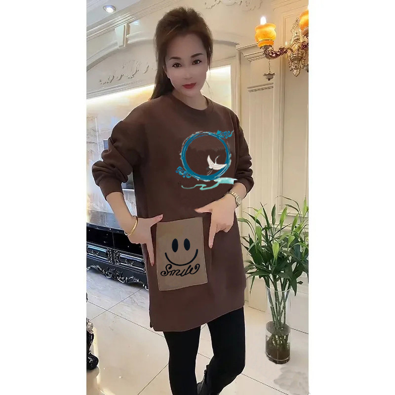 简约时尚图案印花显瘦遮肉体恤潮正肩圆领ins气质感高级宽松卫衣