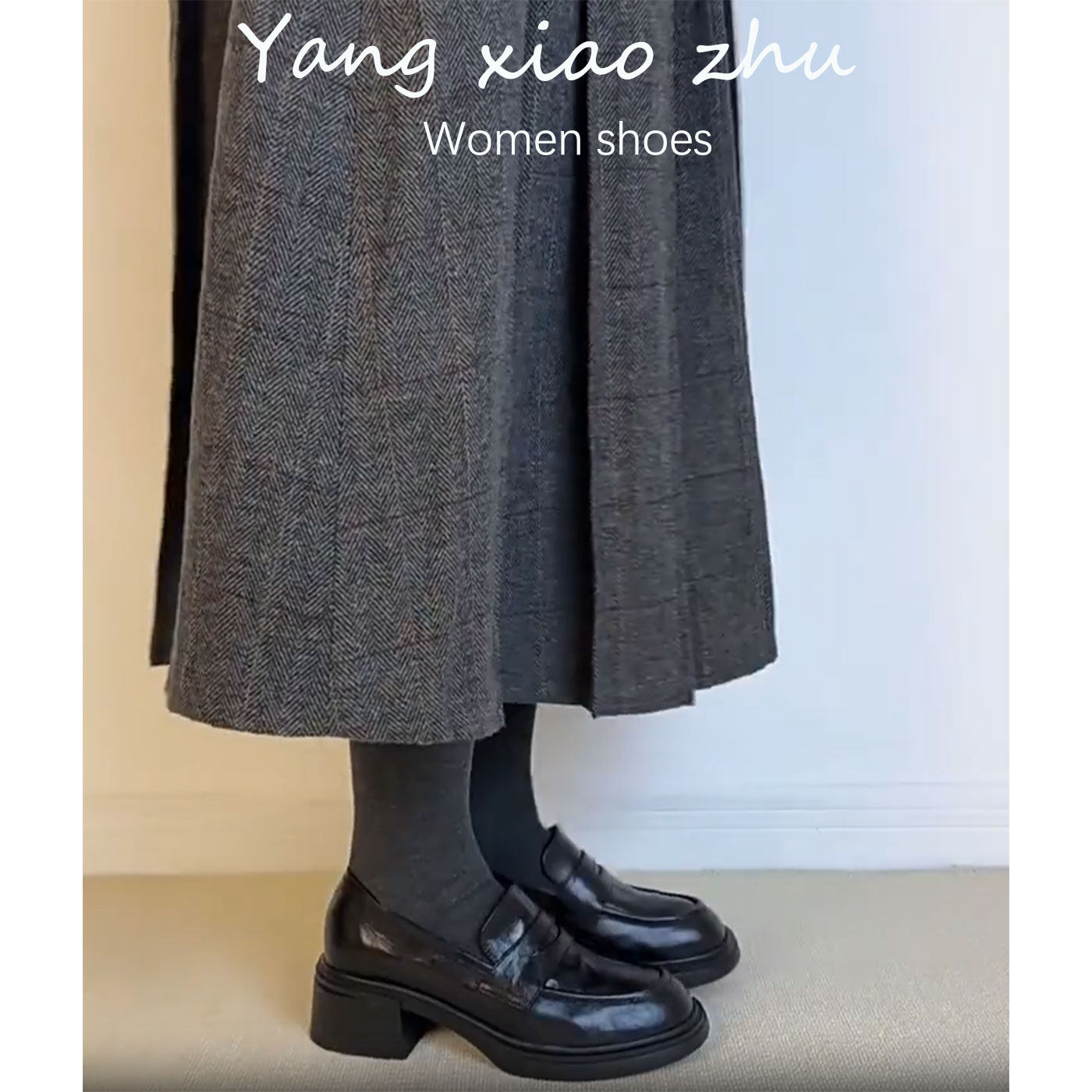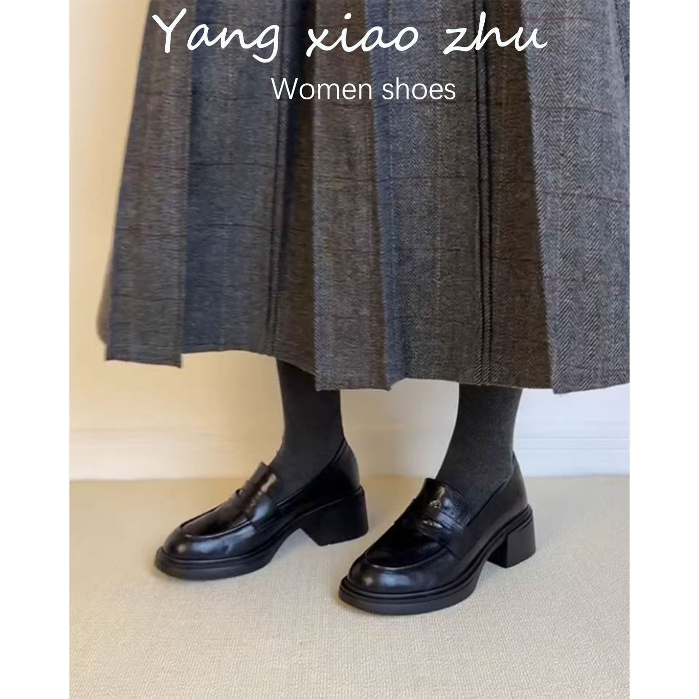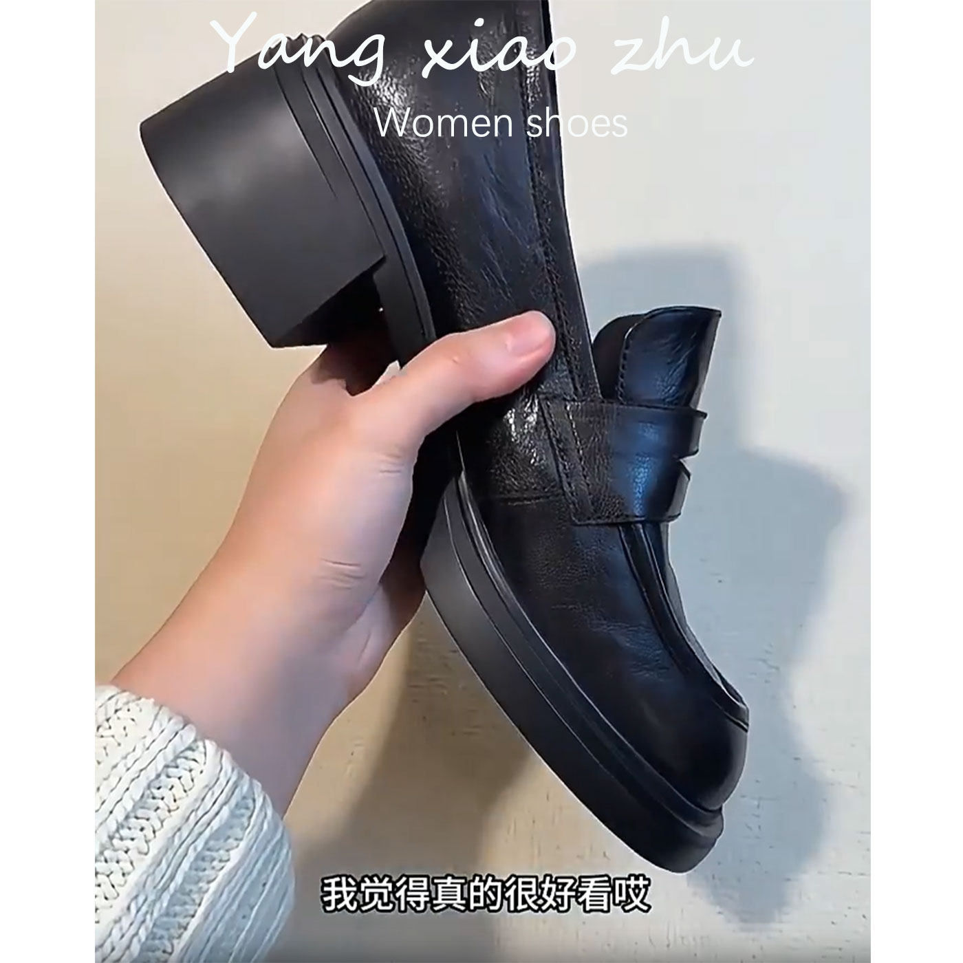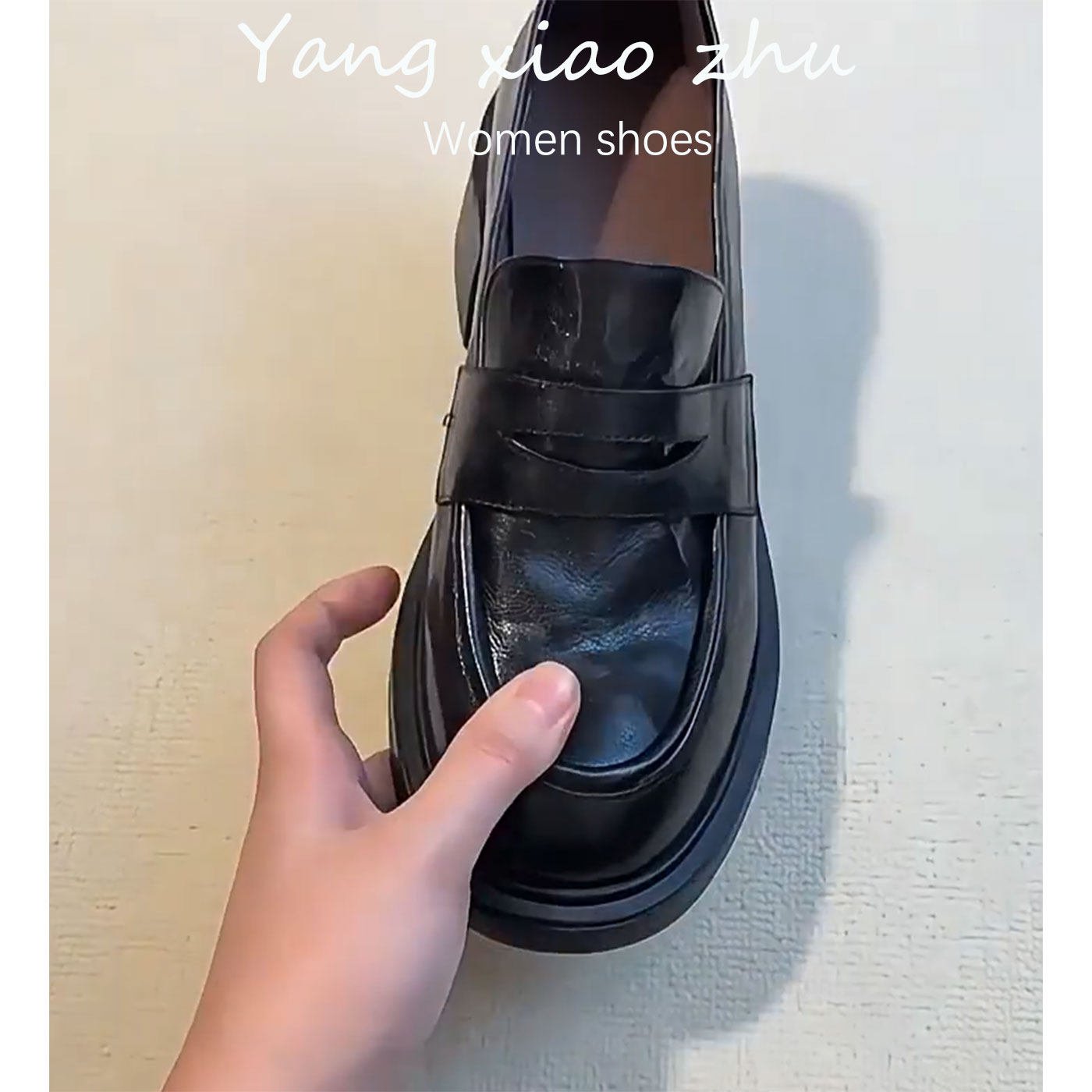 牛皮~法式复古乐福鞋女真皮厚底英伦风小皮鞋黑色2026春季单鞋