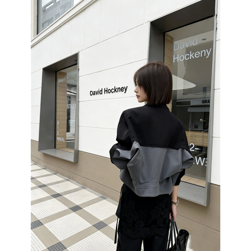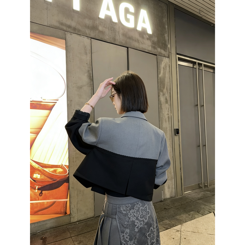 2026早春新款小众设计感可两穿气质时尚拼色百搭短款小西装外套女
