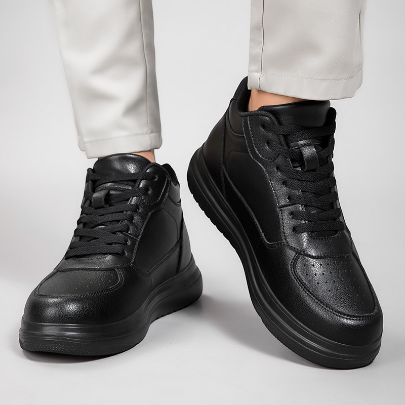 增高鞋男12cm真皮黑色运动板鞋厚底隐形内增高10cm8cm6cm男鞋3637