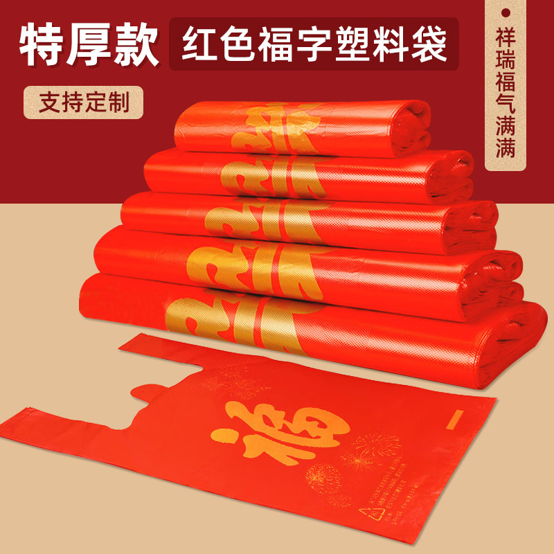 红色福字塑料袋加厚背心喜庆手提购物方便袋袋子批发礼品袋子