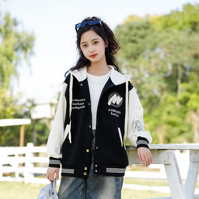大女童春秋装外套2025新款洋气时髦棒球服女孩春季女装初中生连帽