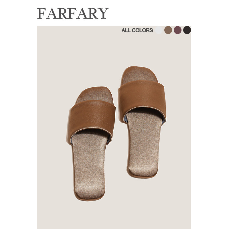 Farfary番薯泥日式真皮拖鞋女夏室内家居软底静音高级感防滑外穿