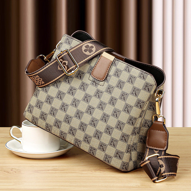 日本进口新款软皮PU斜挎女包时尚简约大容量单肩包中年软皮妈妈包