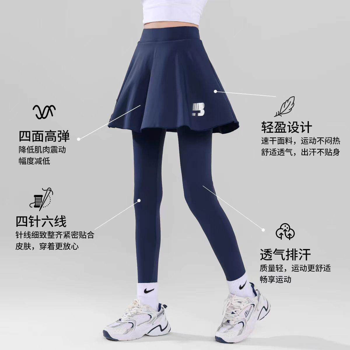 女童运动裤子女孩裙裤春夏装新款儿童装假两件速干裤网球训练紧身