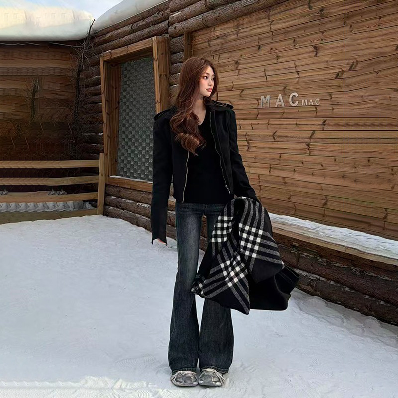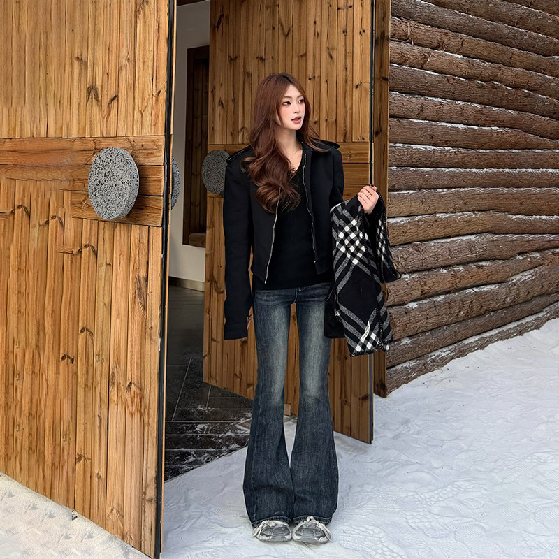 李李服饰设计感压褶微喇牛仔裤女2026夏季新款高腰百搭长裤