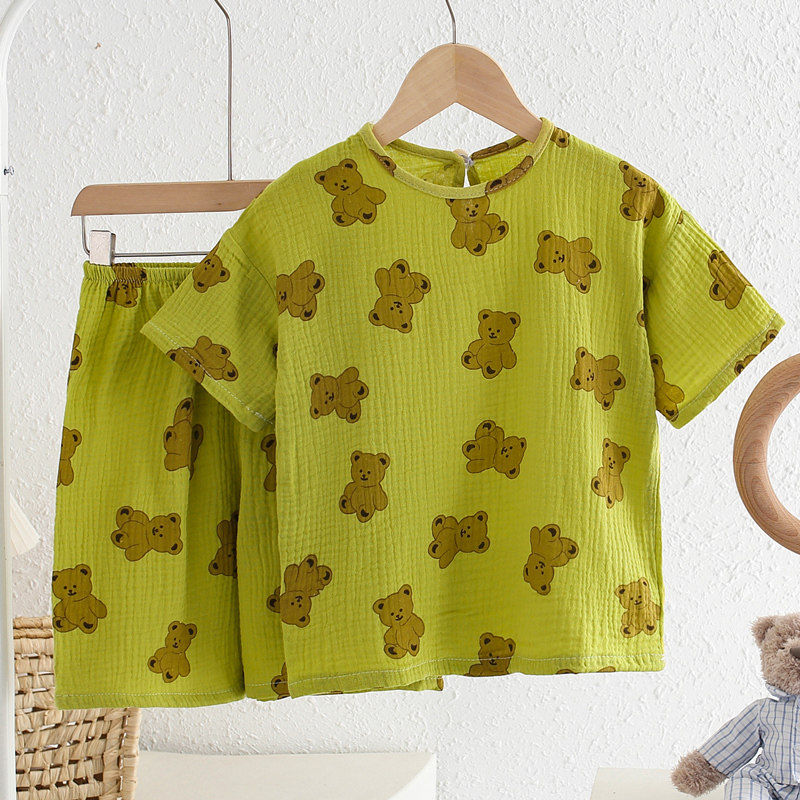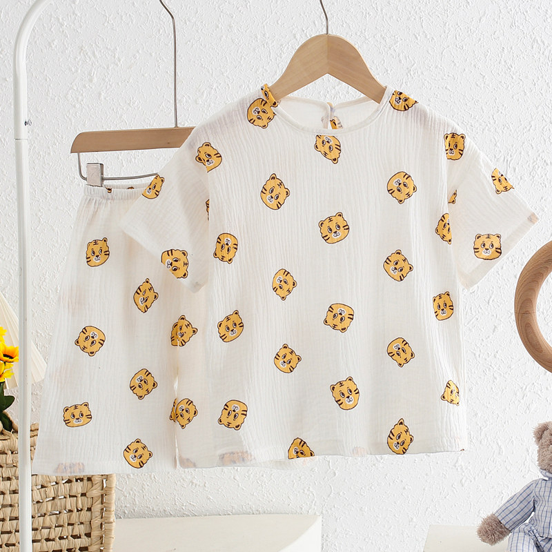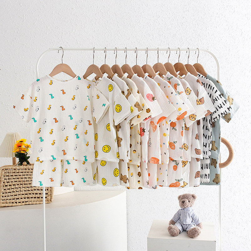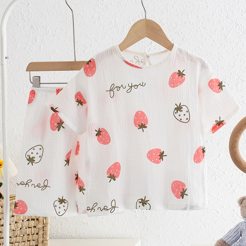 【100%纯棉】夏季儿童睡衣短袖男童小女孩纯棉纱家居服薄款宝宝