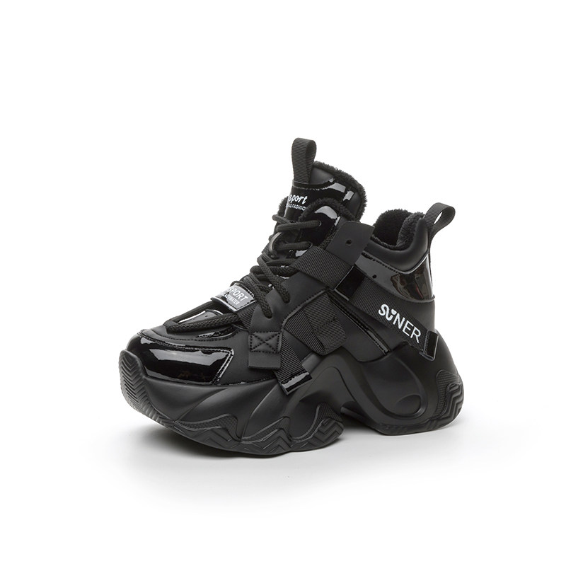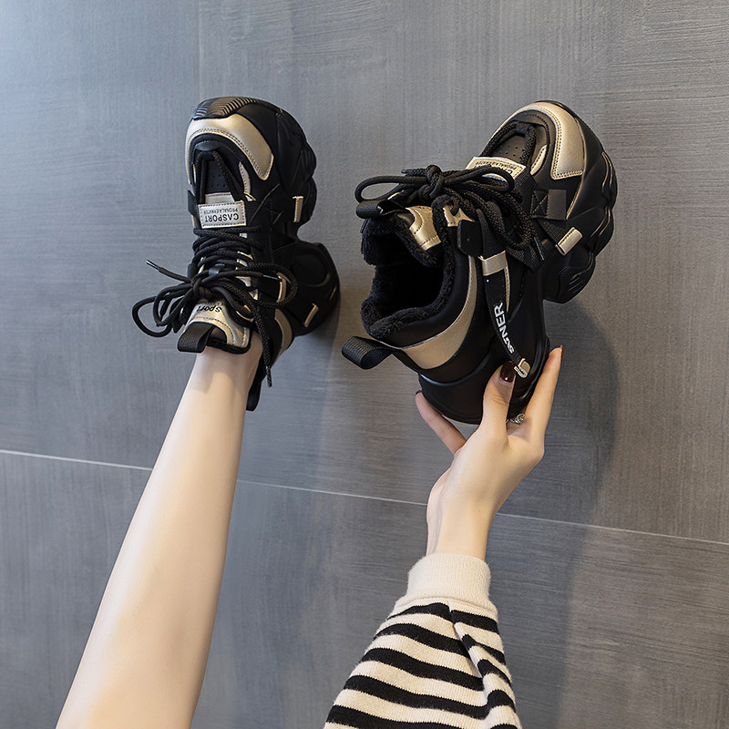 ZFCQ单里内增高老爹鞋女款真皮2026春秋新款显脚小8cm黑色高帮鞋