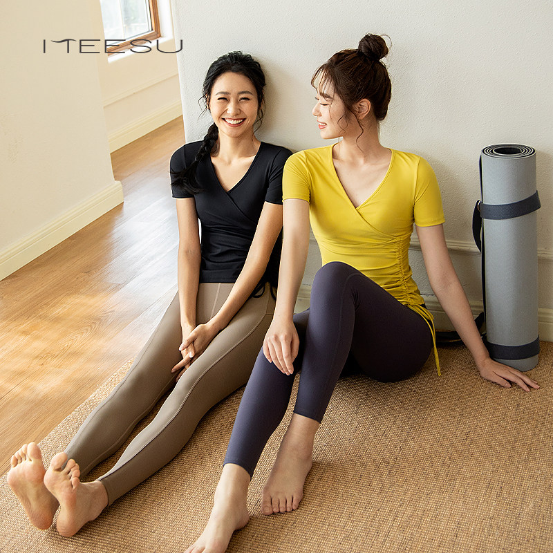 美愫瑜伽服套装带胸垫女秋季款运动上衣长袖薄款宽松健身服短袖