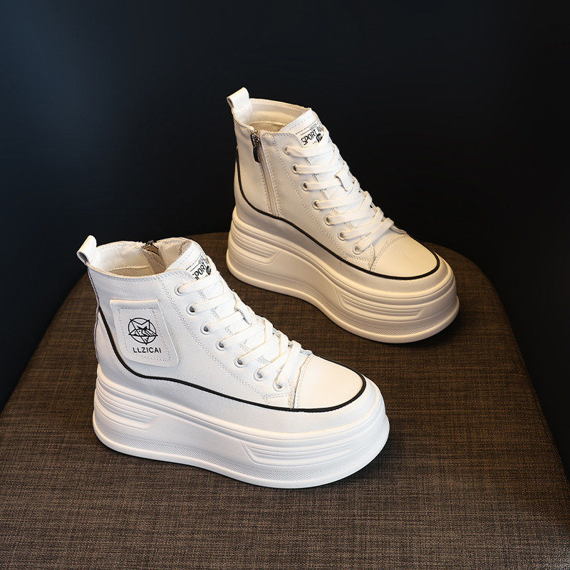 真皮高帮小白鞋2025新款显脚小爆款隐形内增高小个子休闲女鞋8CM