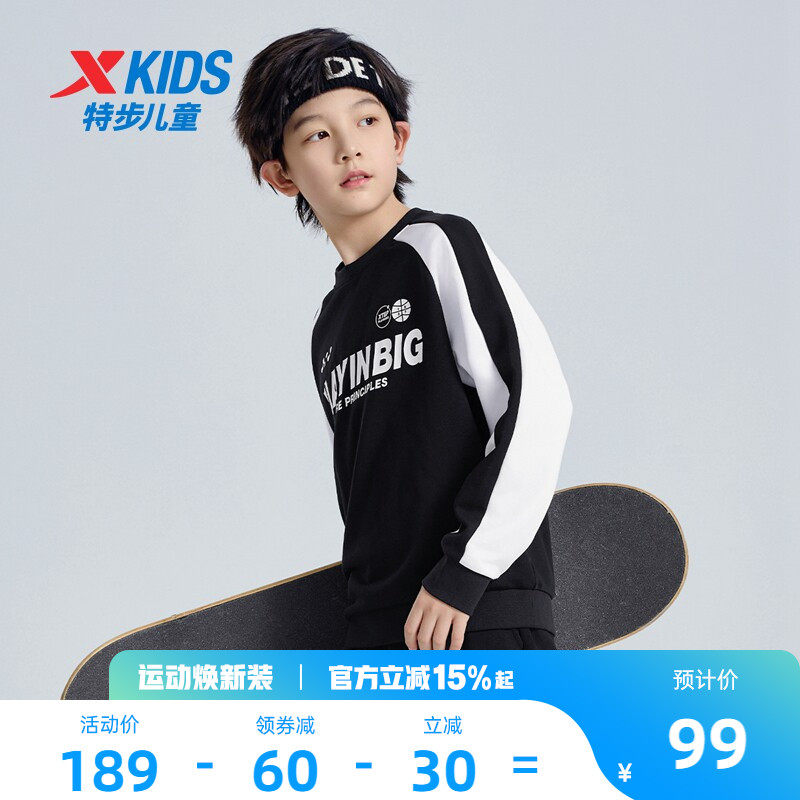 特步儿童套装男童春装2026年新款拼接长袖儿童套头运动套装中大童