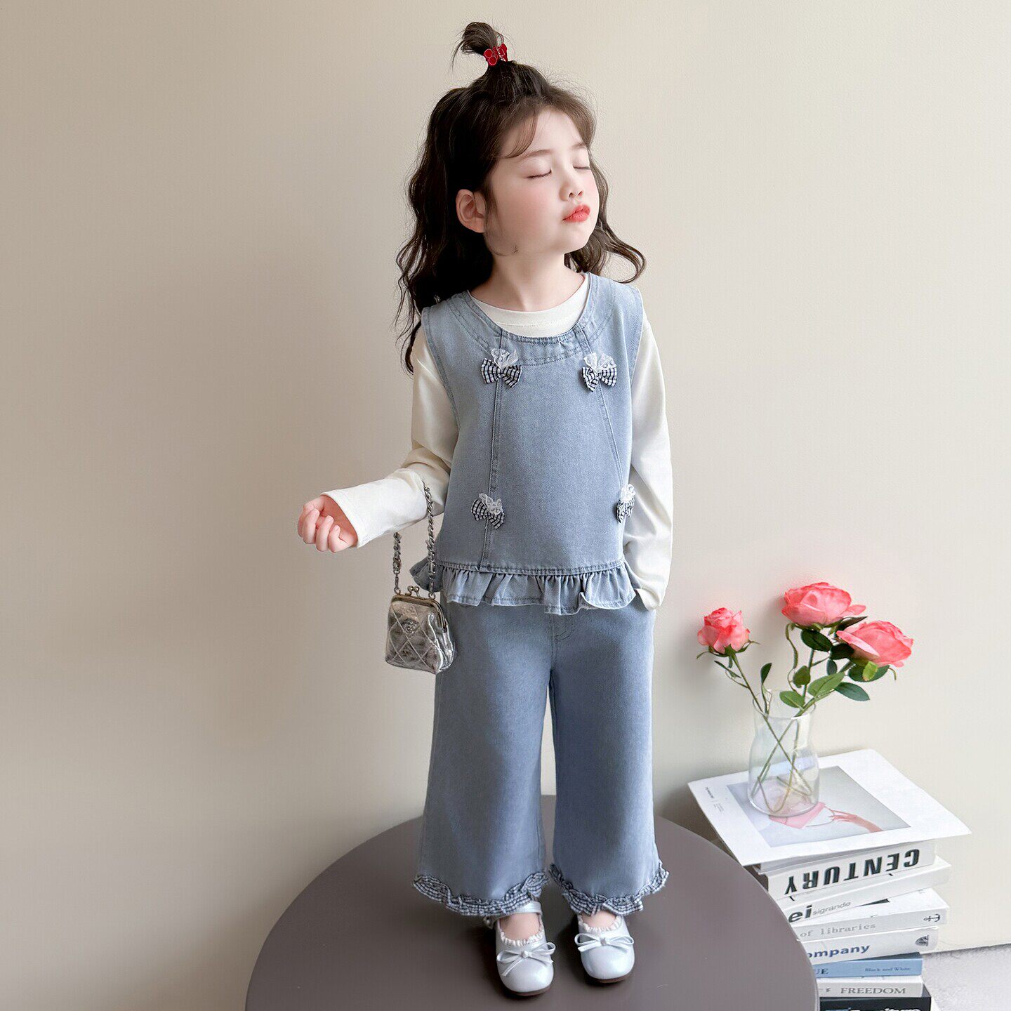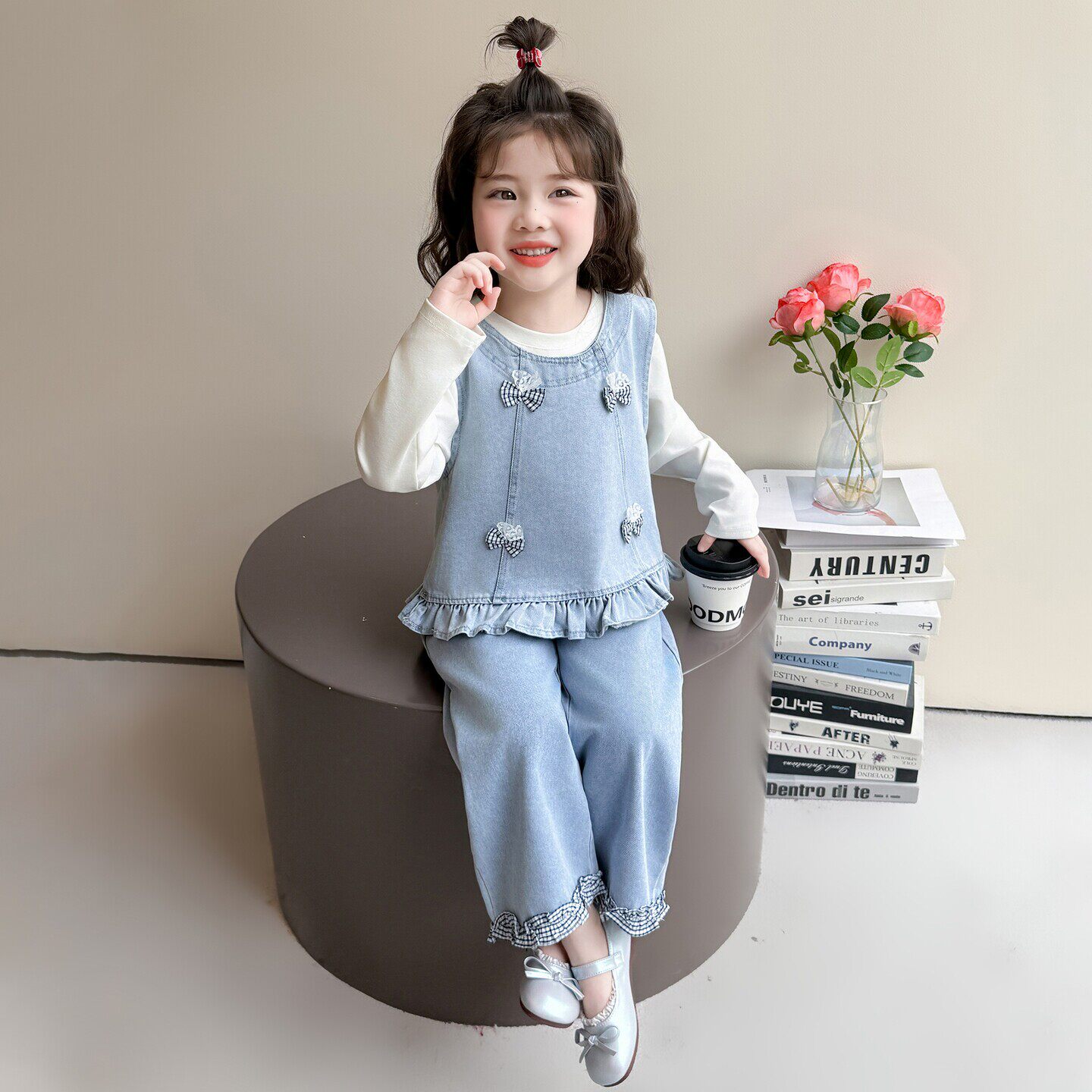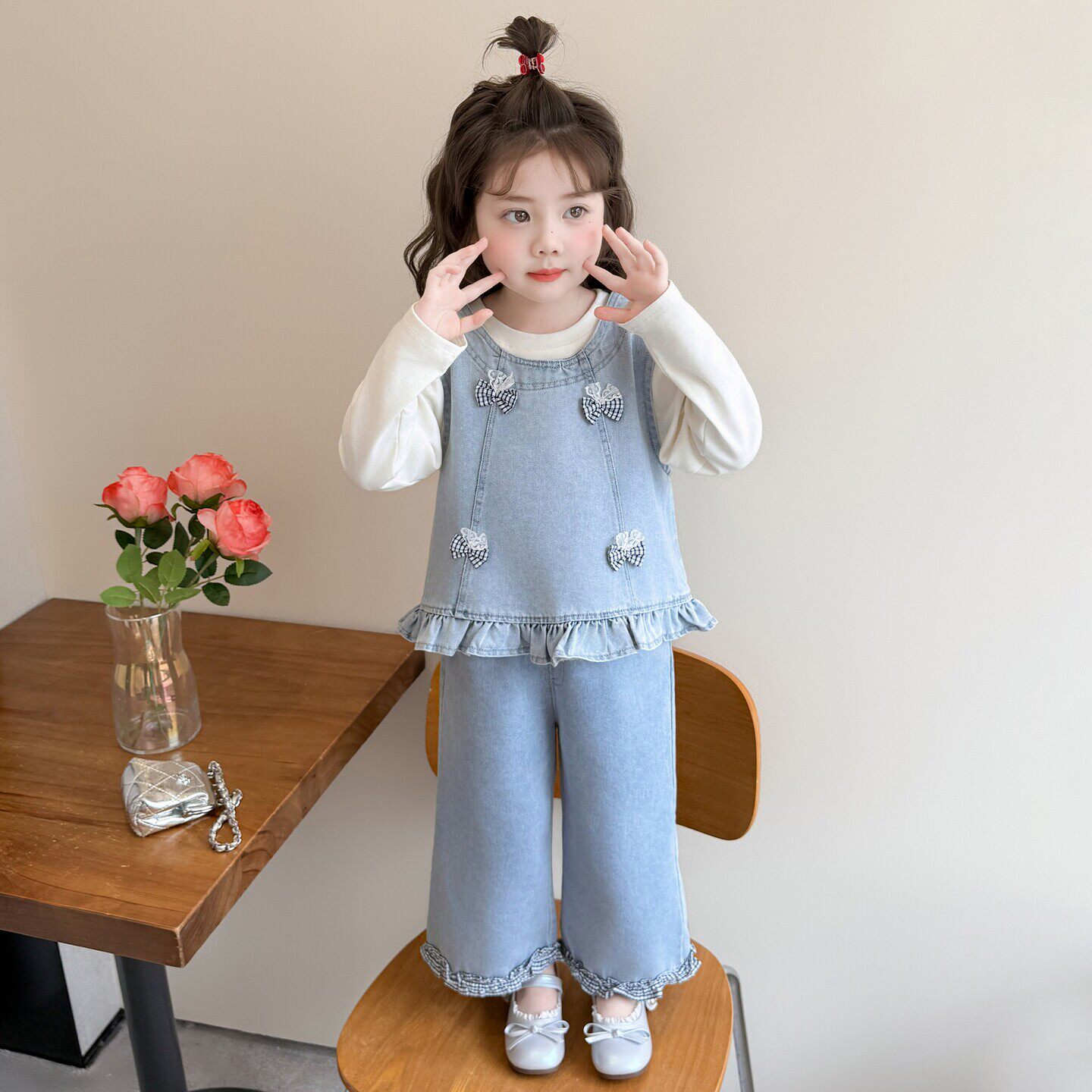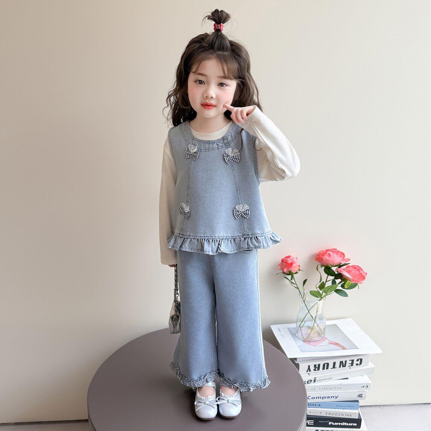 女三件春装春季牛仔蝴蝶结洋气时髦2026儿童新款套装春秋女童宝宝